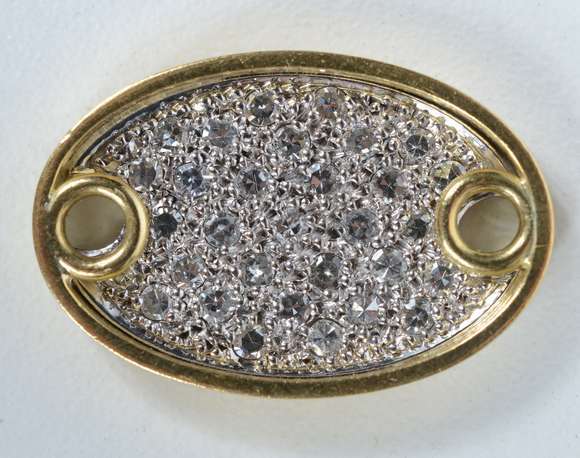 Pendente oval de ouro branco e ouro 18 k., com brilhantes. (Por motivos de segurança a peça não se encontra na loja).