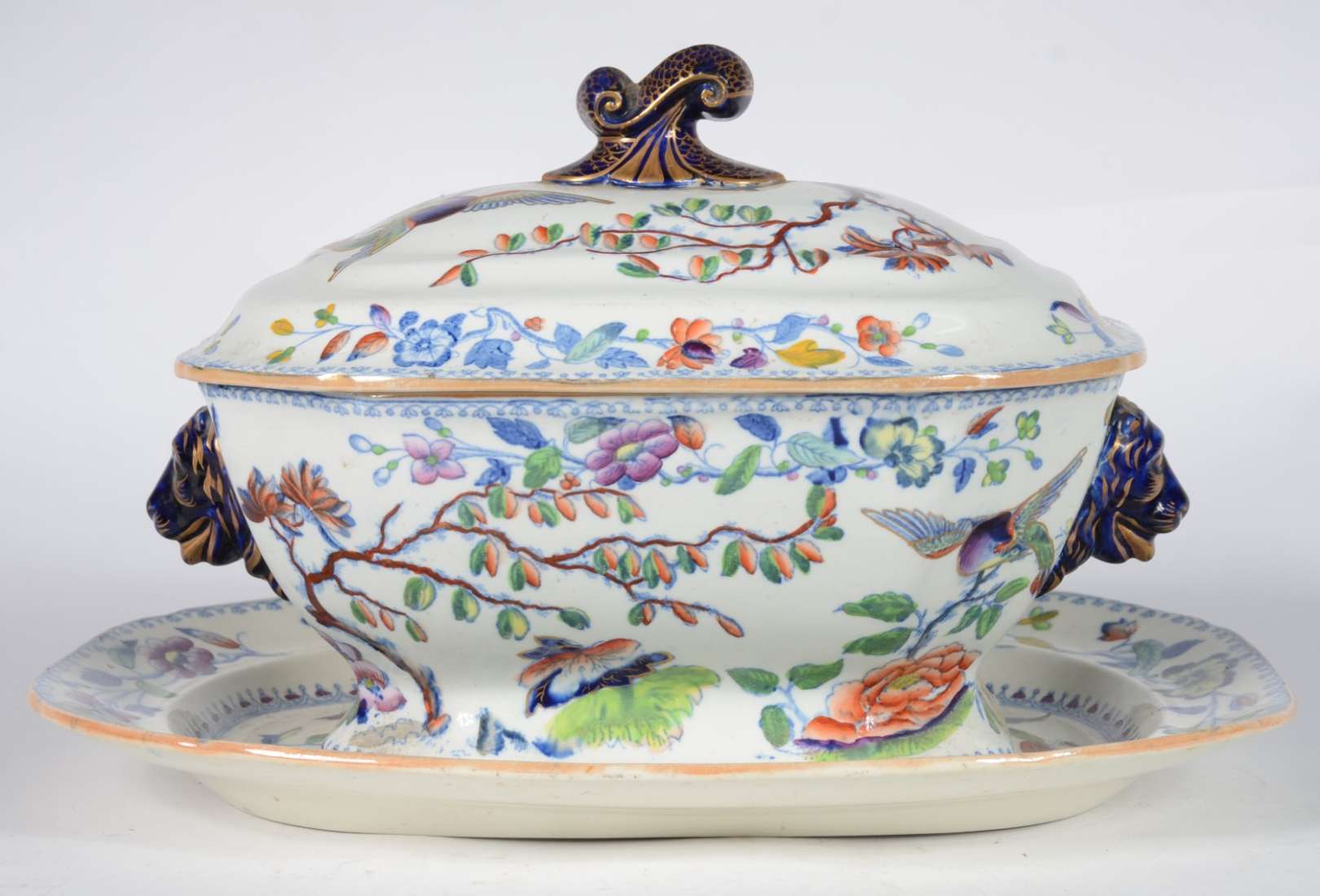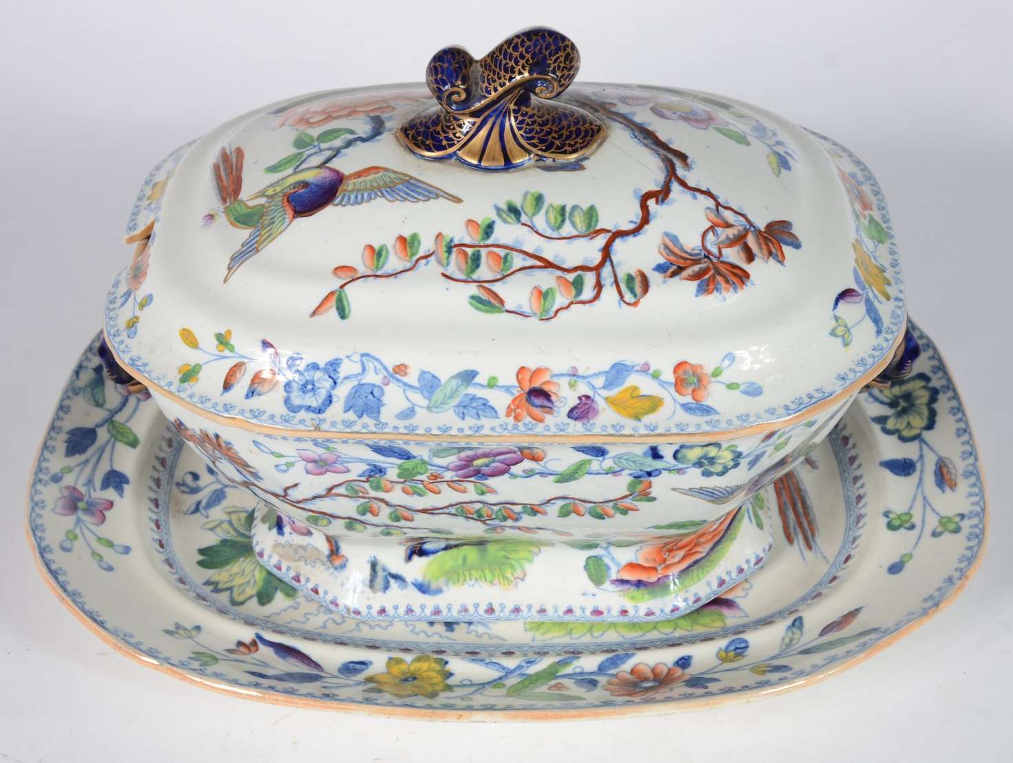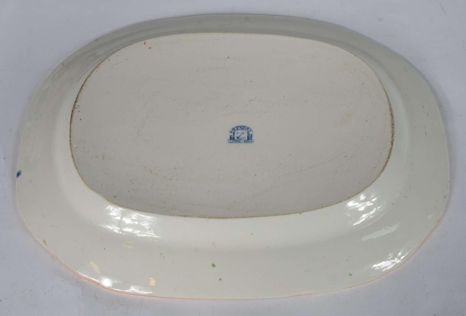 Antônio Ferrão Moniz de Aragão - Sopeira menor de porcelana branca com detalhes em azul e friso dourados e monograma....