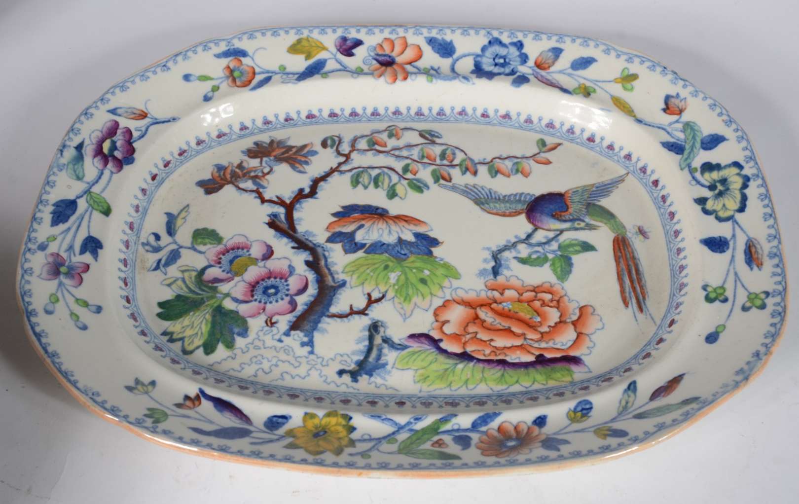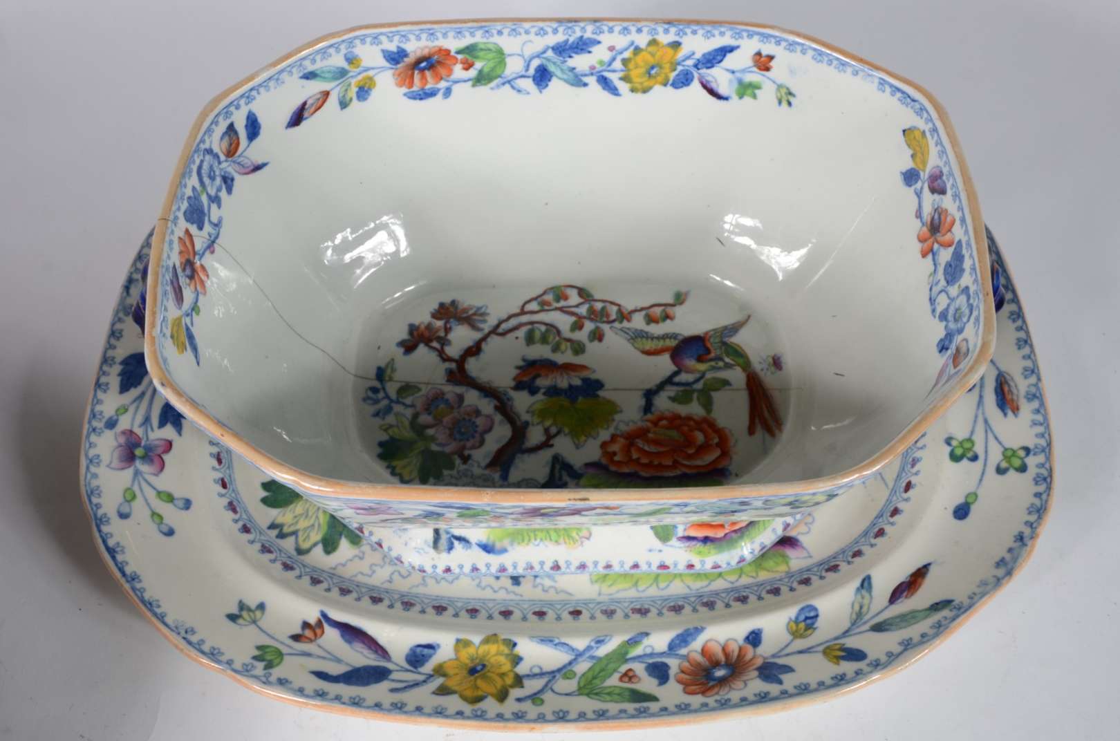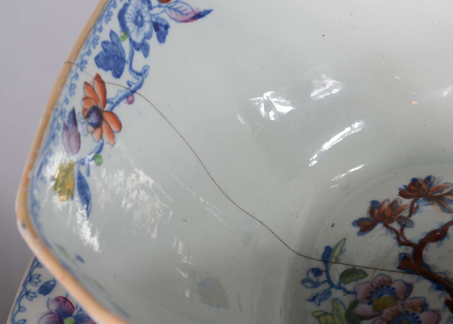 Bowl de cerâmica espanhola pintada á mão com flores em policromia.