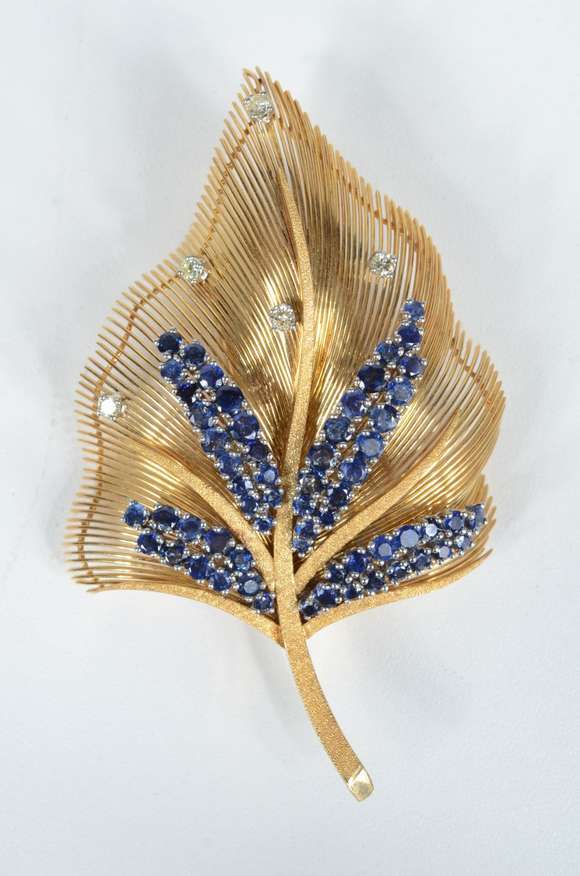 Conjunto com três presas com incrustações de ouro 18 k., contraste 750 mls.