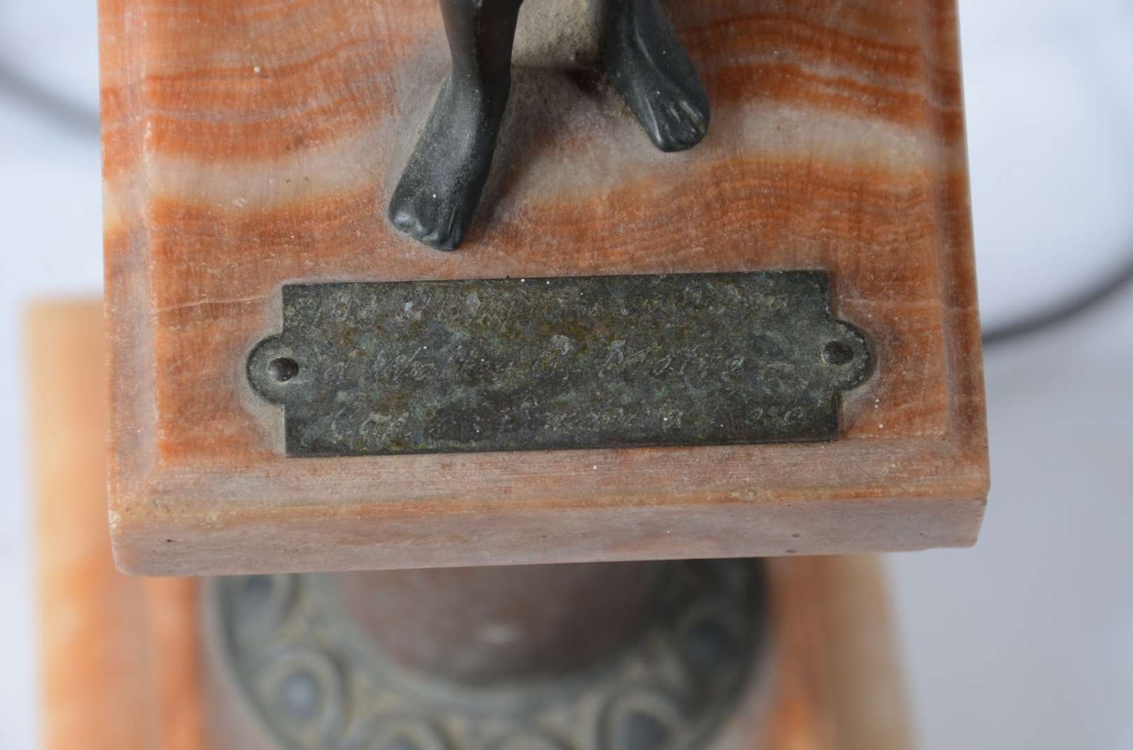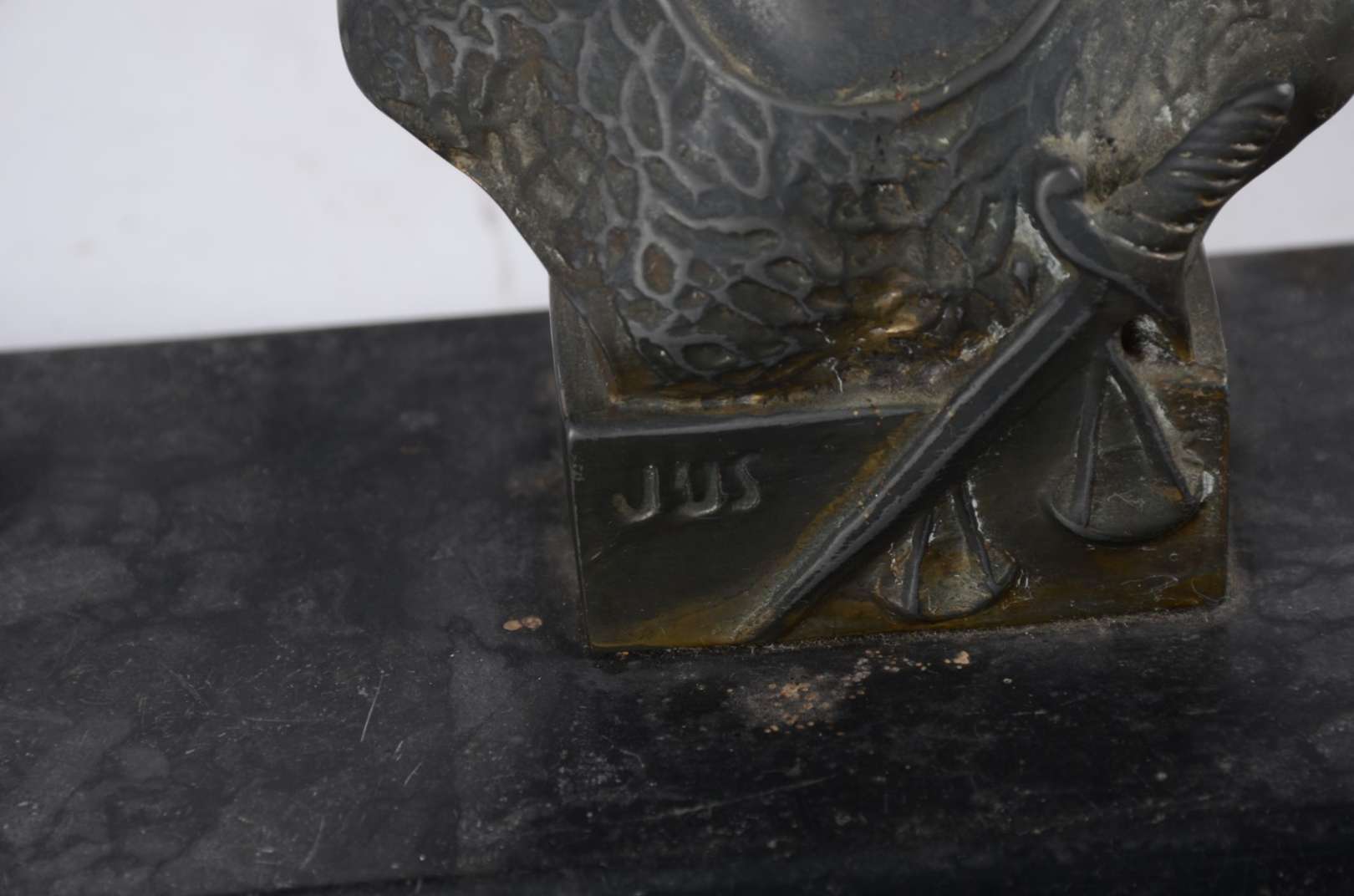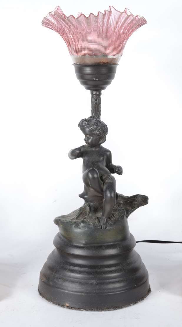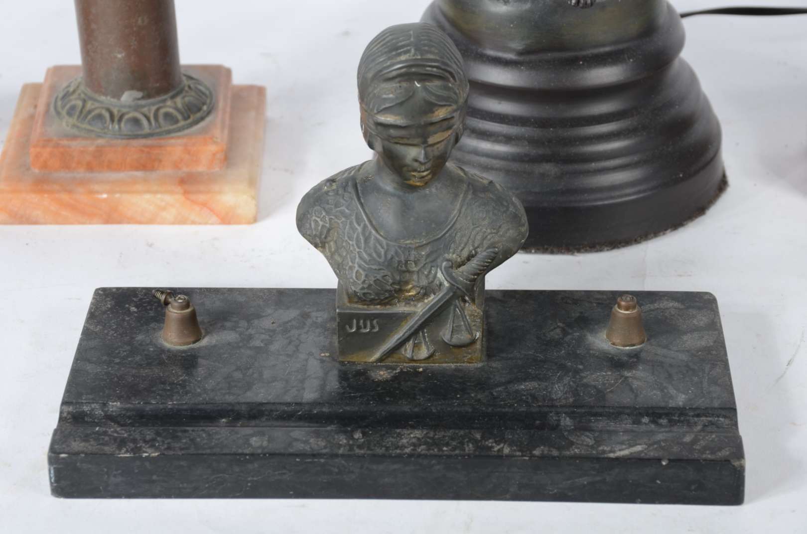 Cinco estatuetas diversas de metal. Desgastes e partes faltantes.
