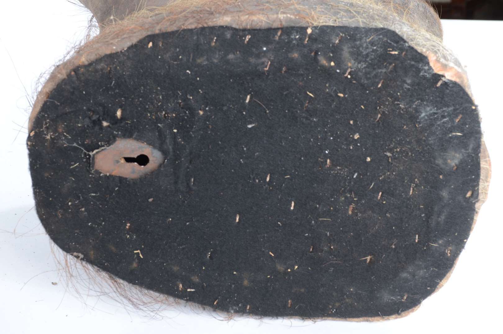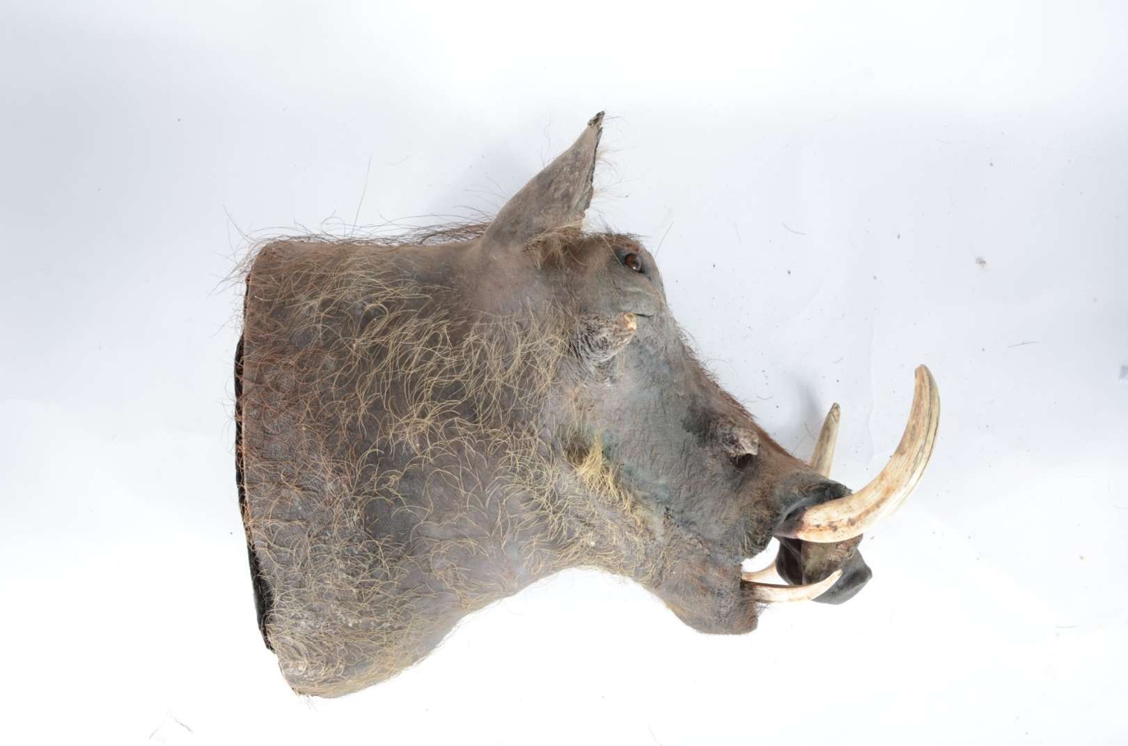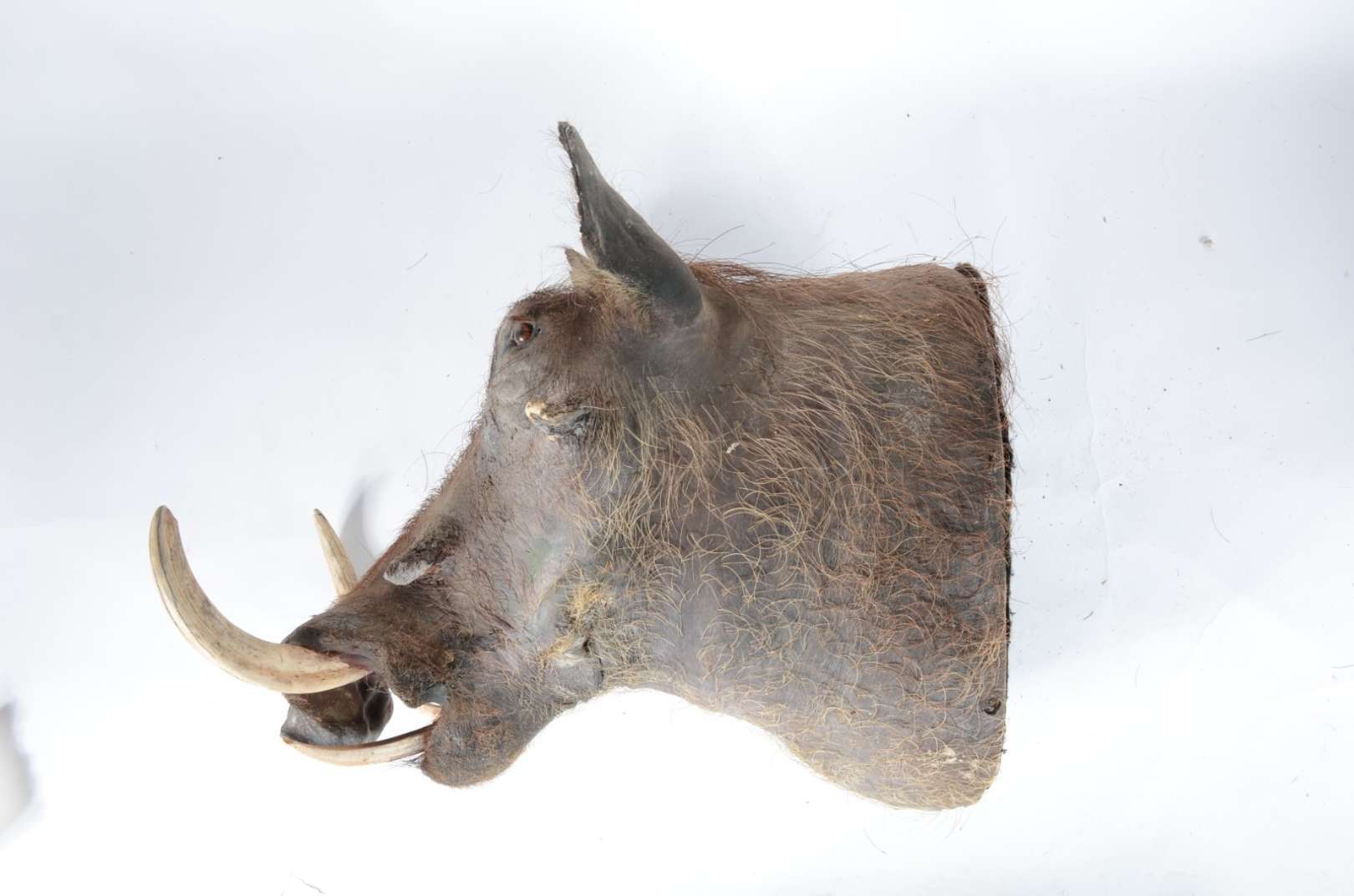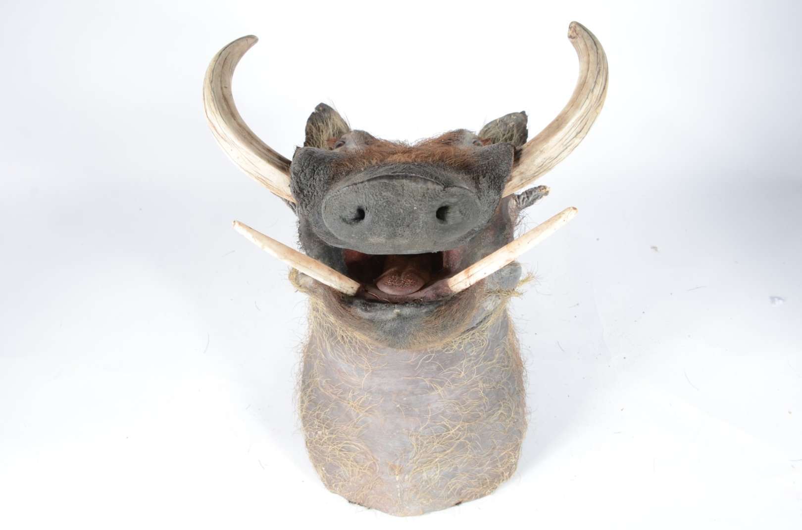 Escultura de resina na forma de chifre com animais em relevo, base de madeira.