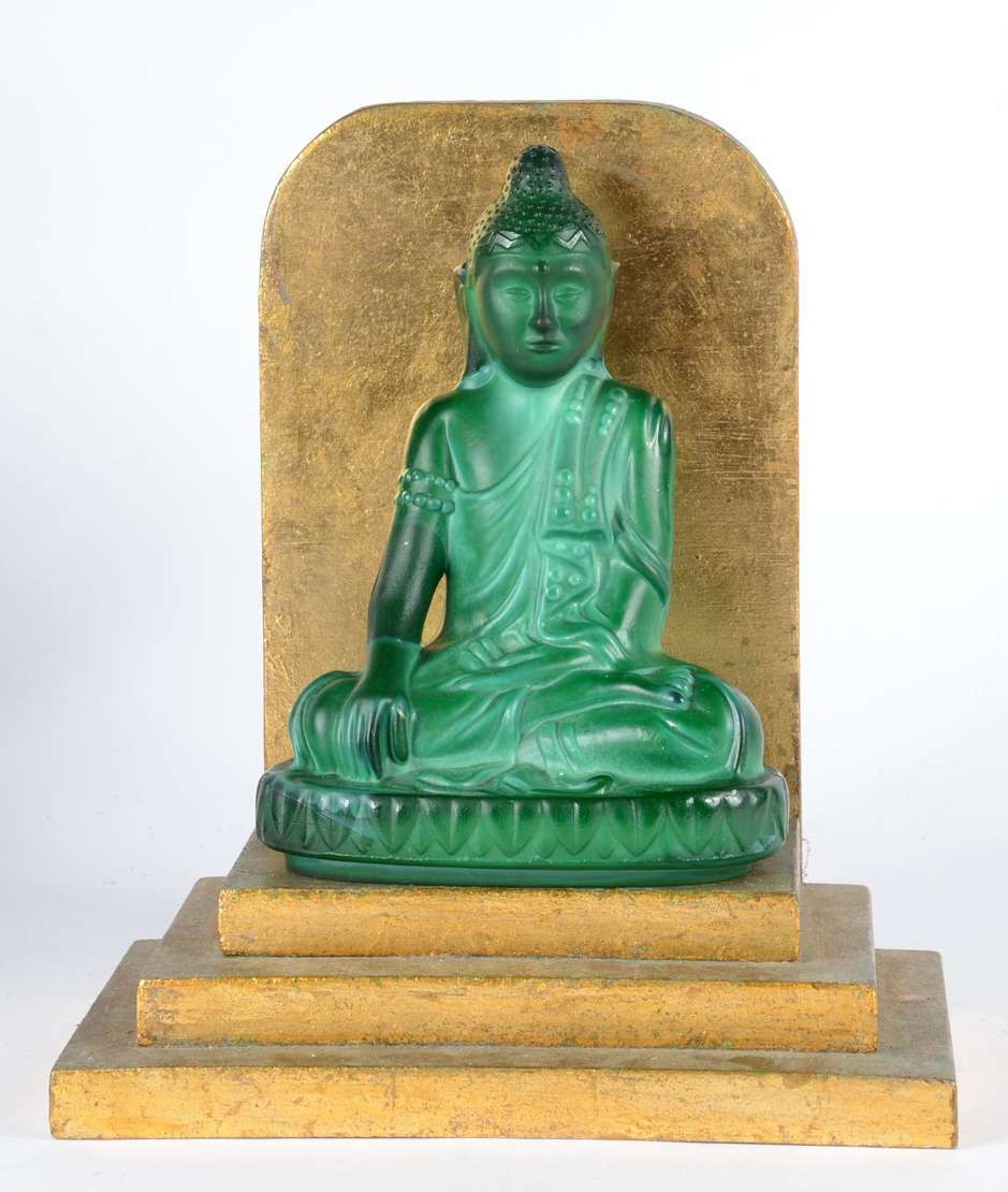 Escultura cerâmica vitrificada azul representando cabeça de Deusa.