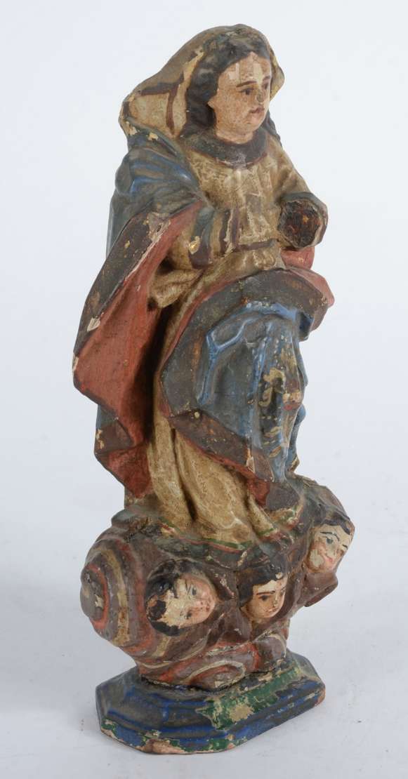 Nossa Senhora da Conceição - Antiga Imagem de madeira policromada. Desgastes.