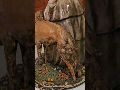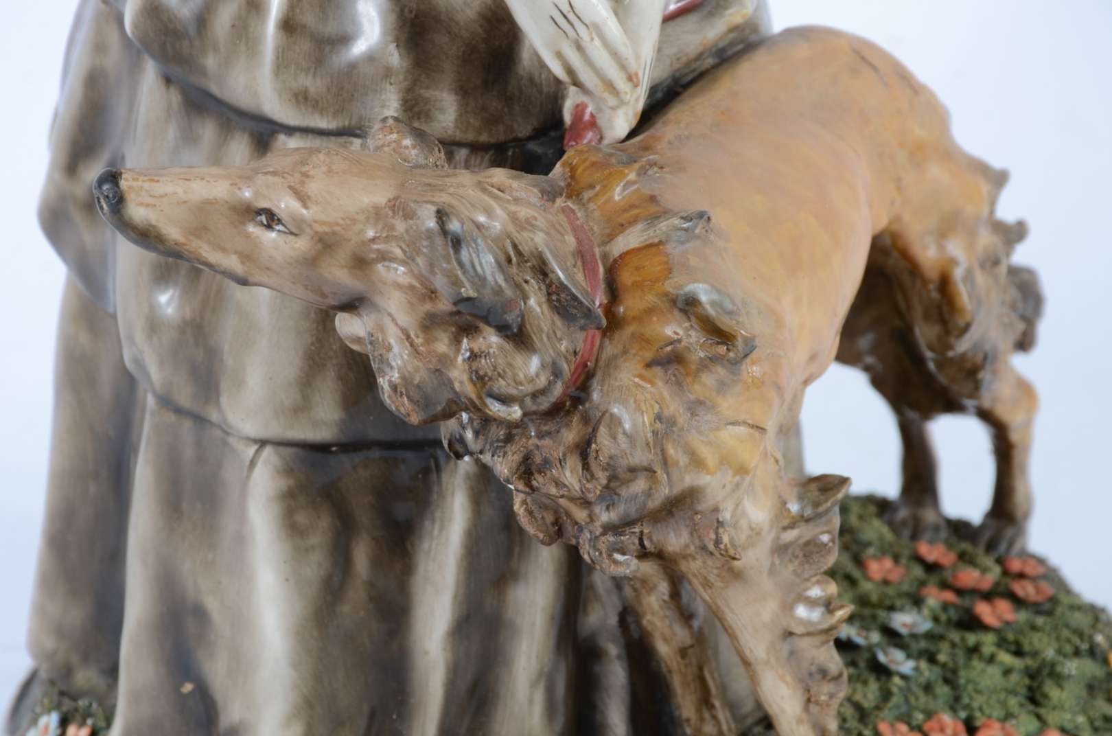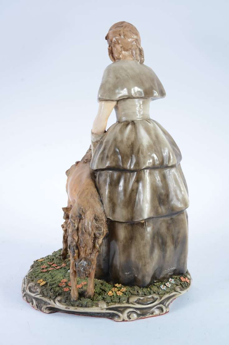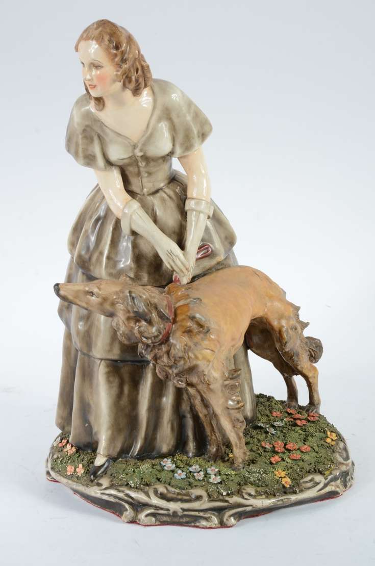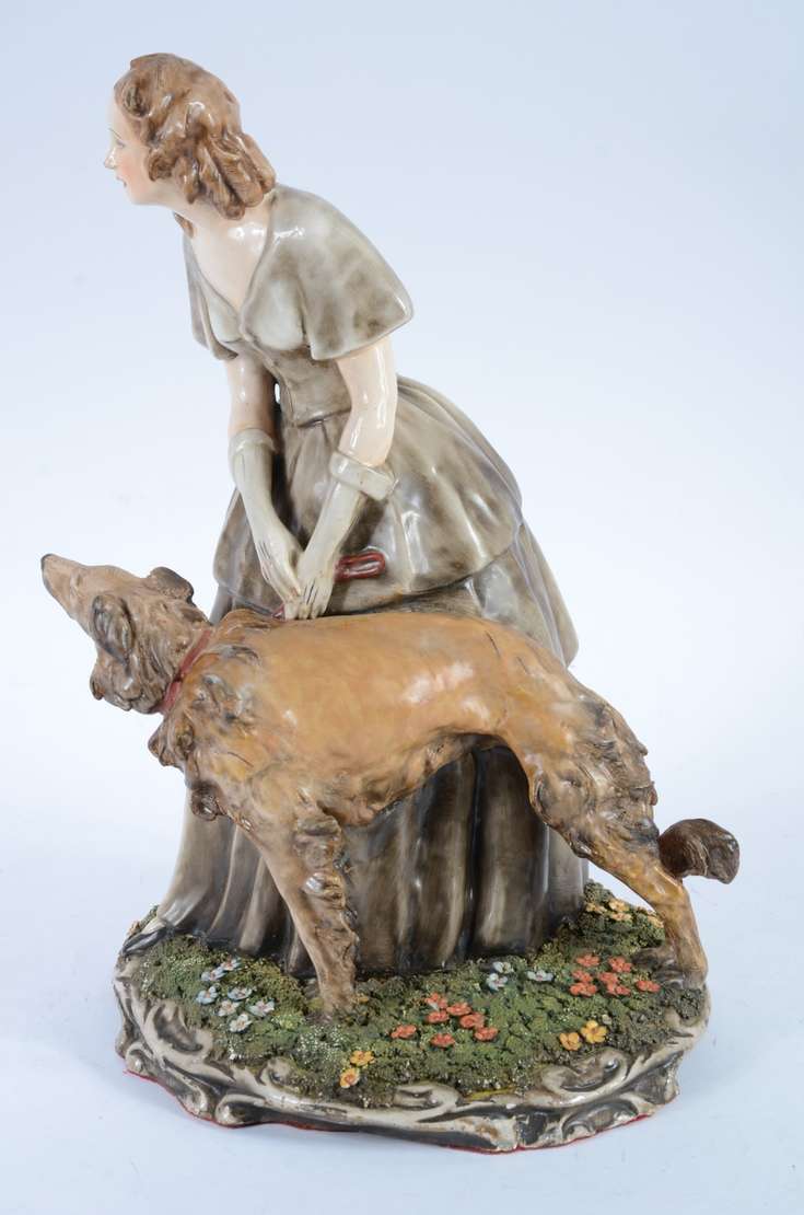 Escultura de bronze patinada, base de madeira com inicias R.C. Um pé quebrado, a escultura não está ficando em pé sob...