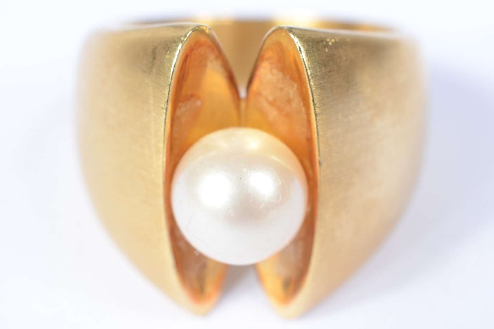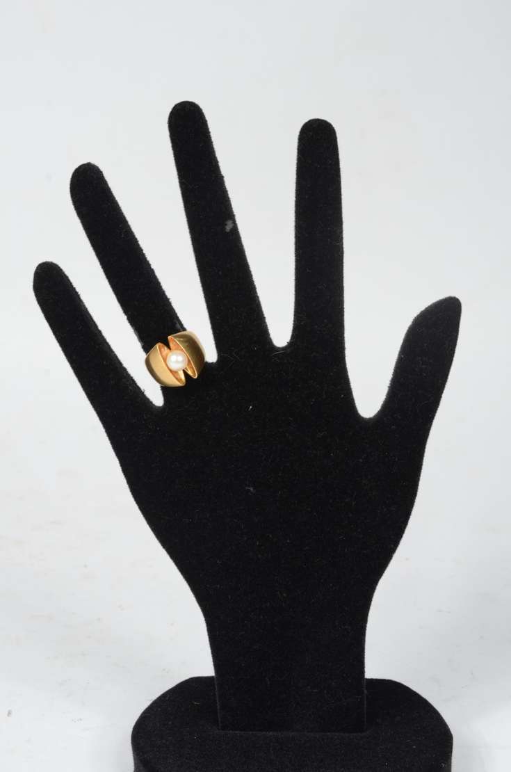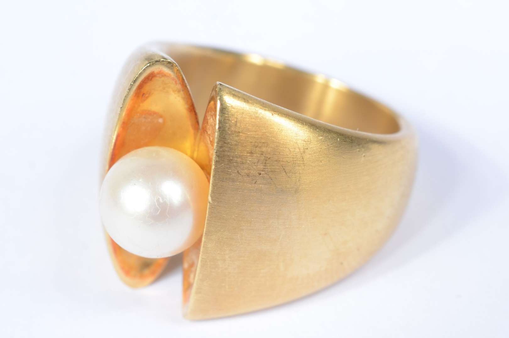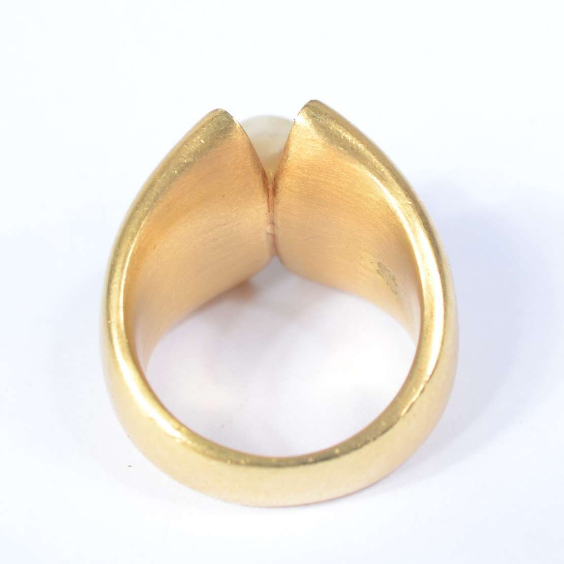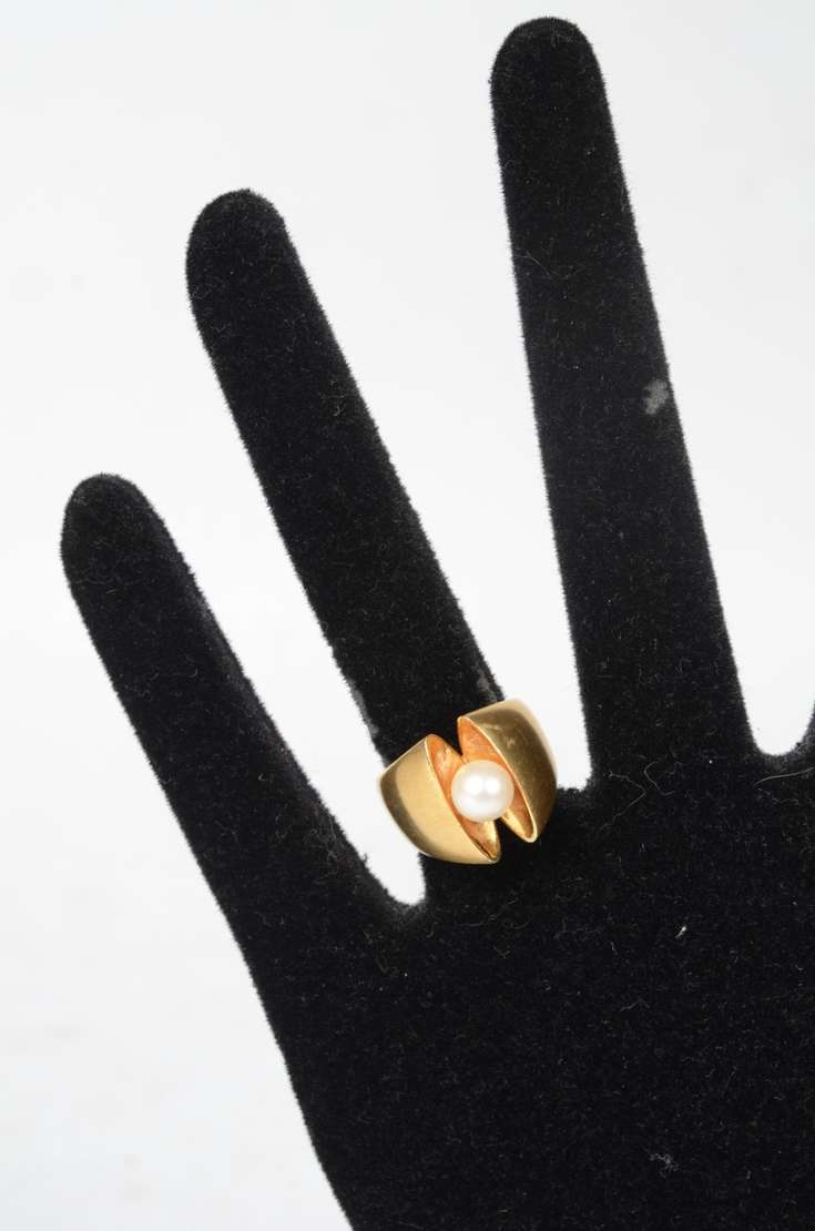 Anel de ouro 18 k., com perola. Aro 17. (Por motivosde segurança a peça não se encontra na loja).