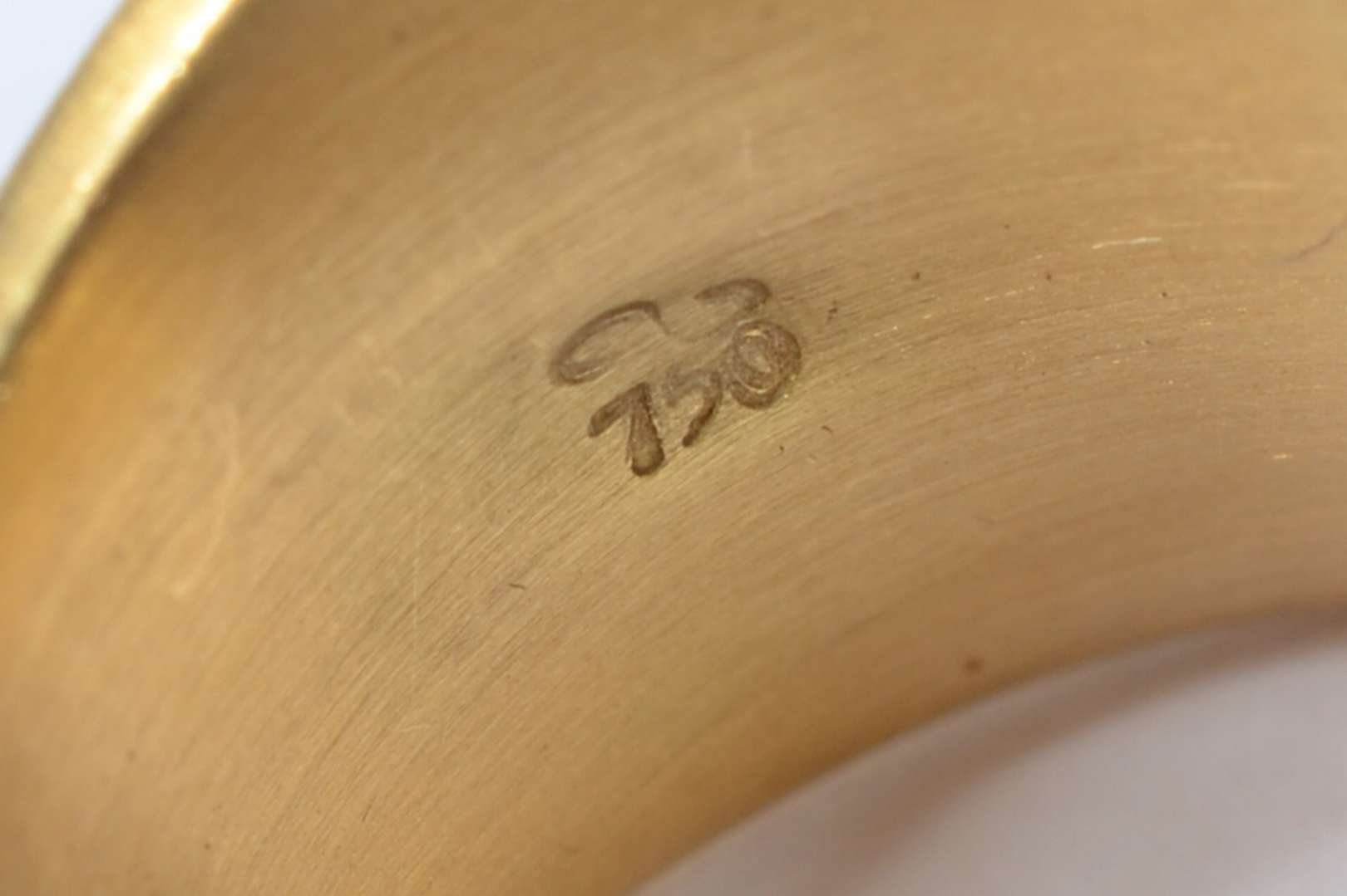 Anel de ouro 18 k., contraste 750 mls cravejado com brilhantes. Aro 14. (Por motivos de segurança a peça não se encon...