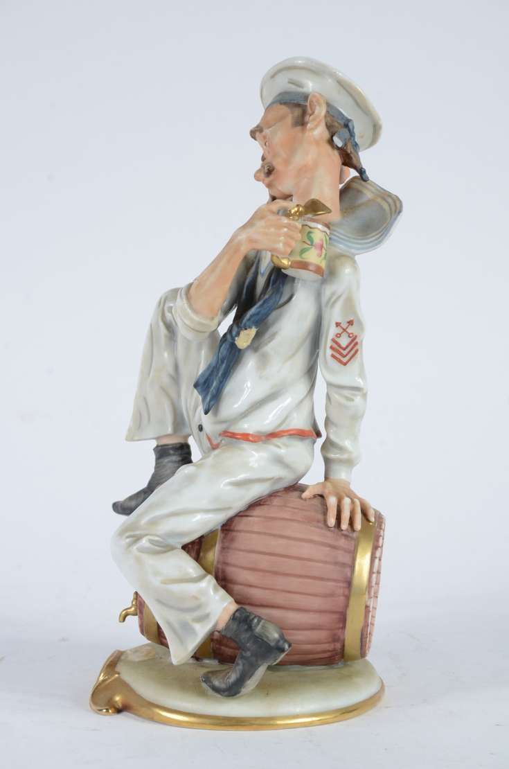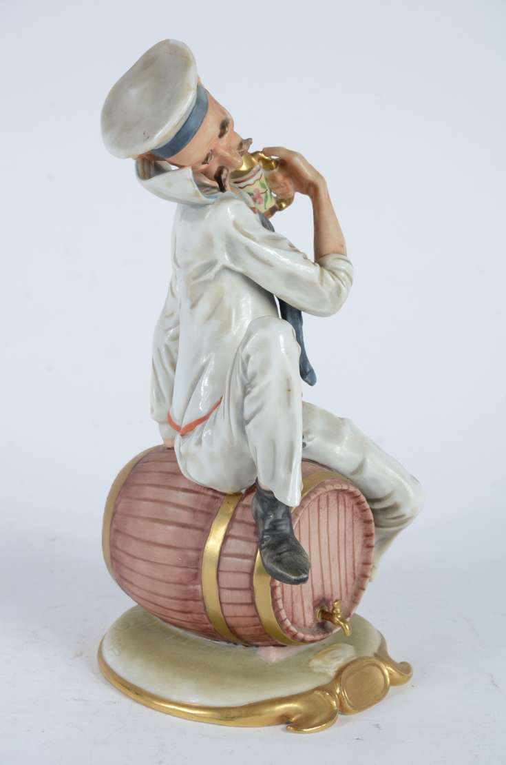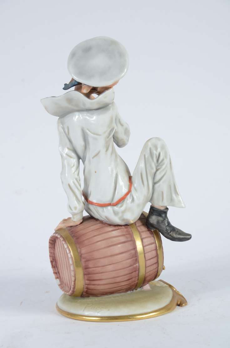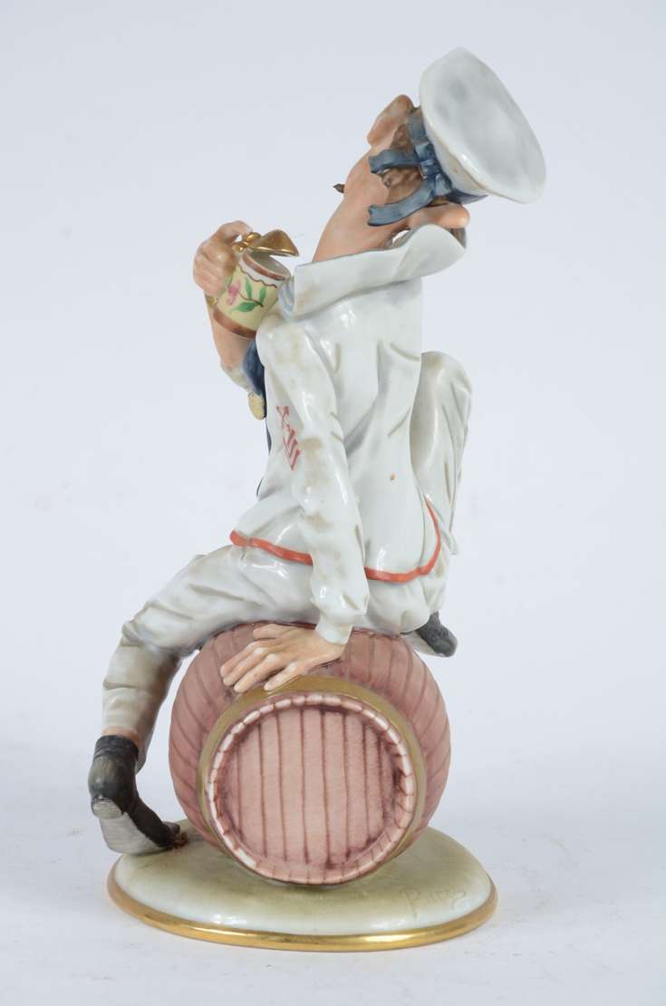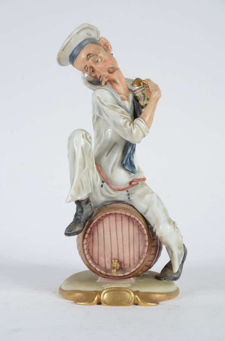Escultura de bronze patinada, base de madeira com inicias R.C. Um pé quebrado, a escultura não está ficando em pé sob...