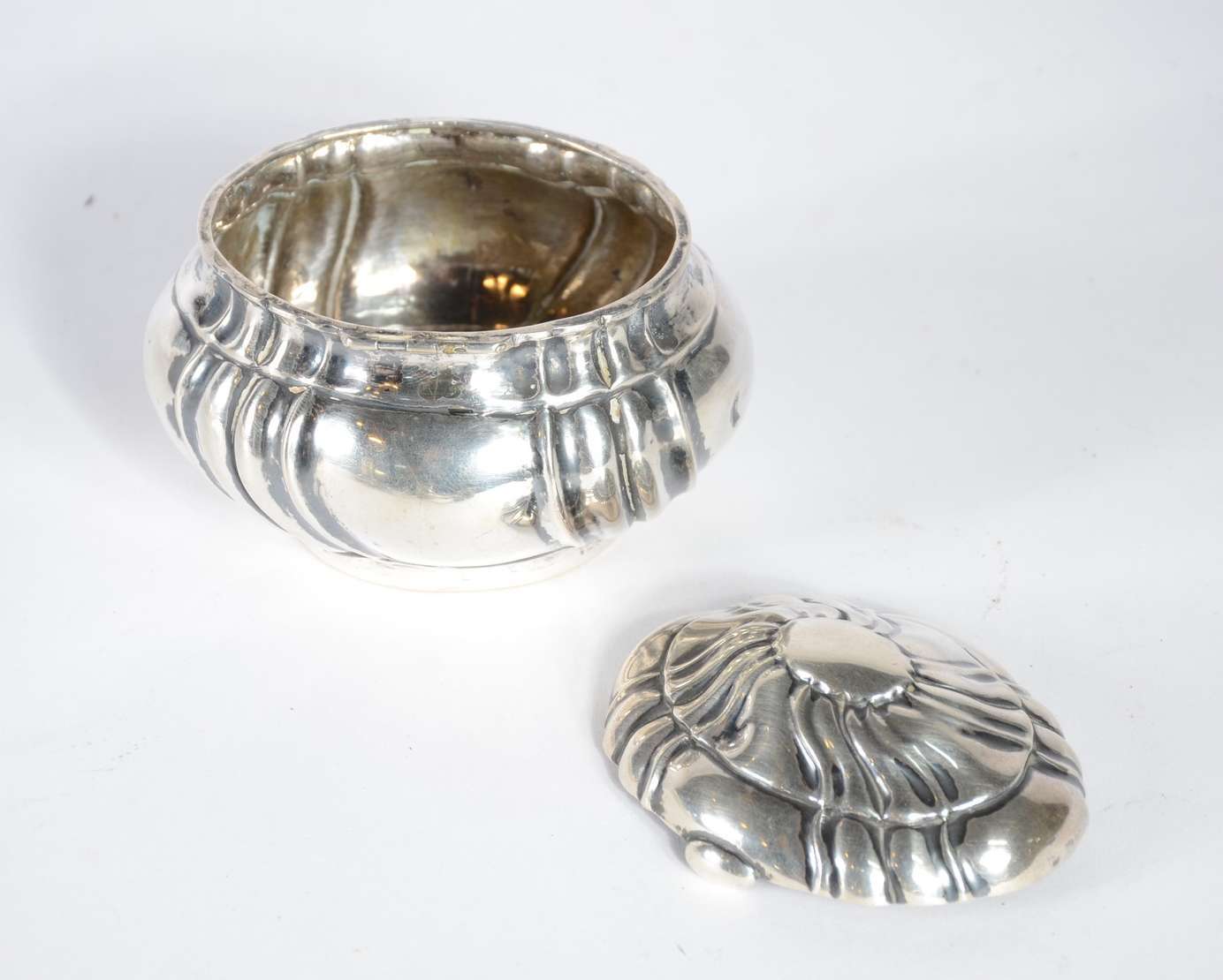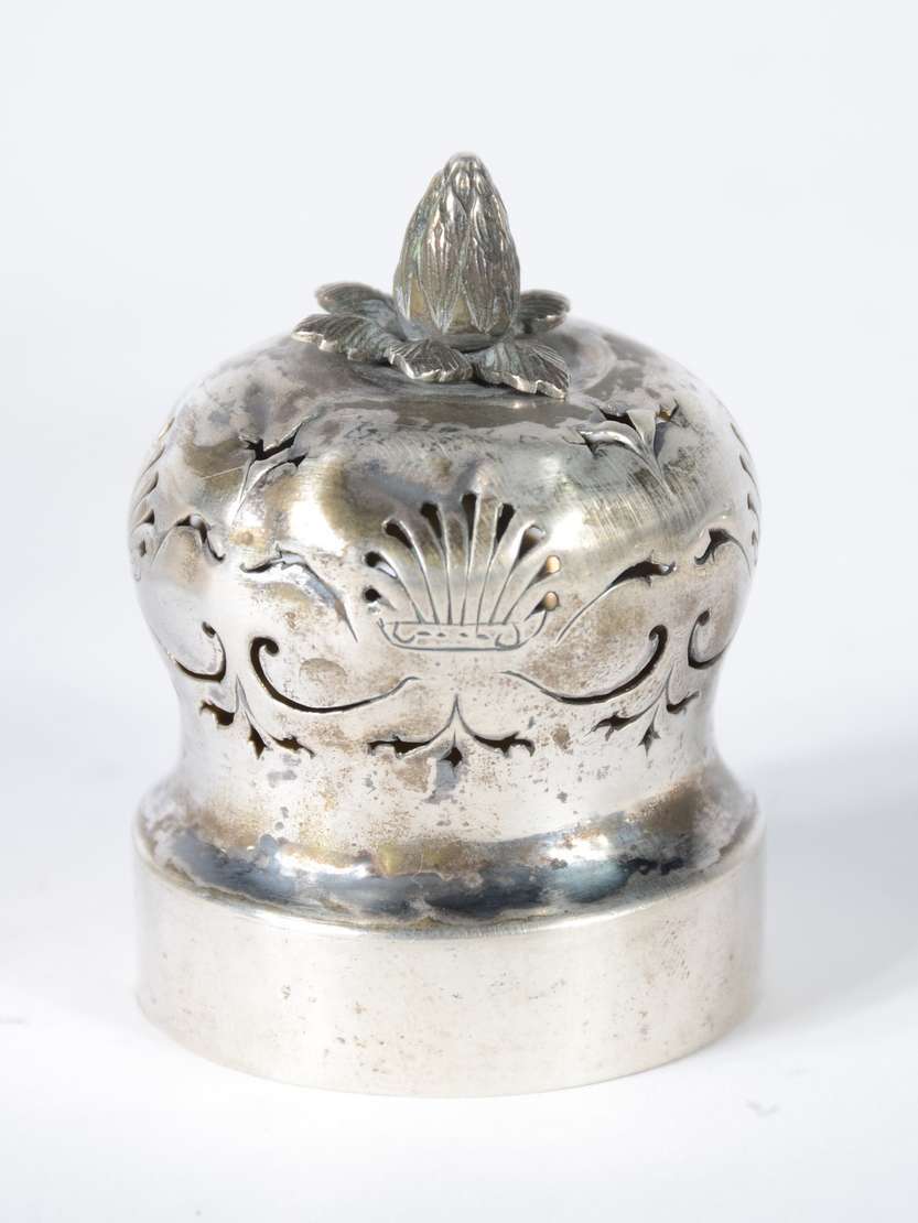 Cálice sacro de prata cinzelada, contraste 925 mls. Pequenos amassados. Peso da prata: 120 g. (Por motivos de seguran...