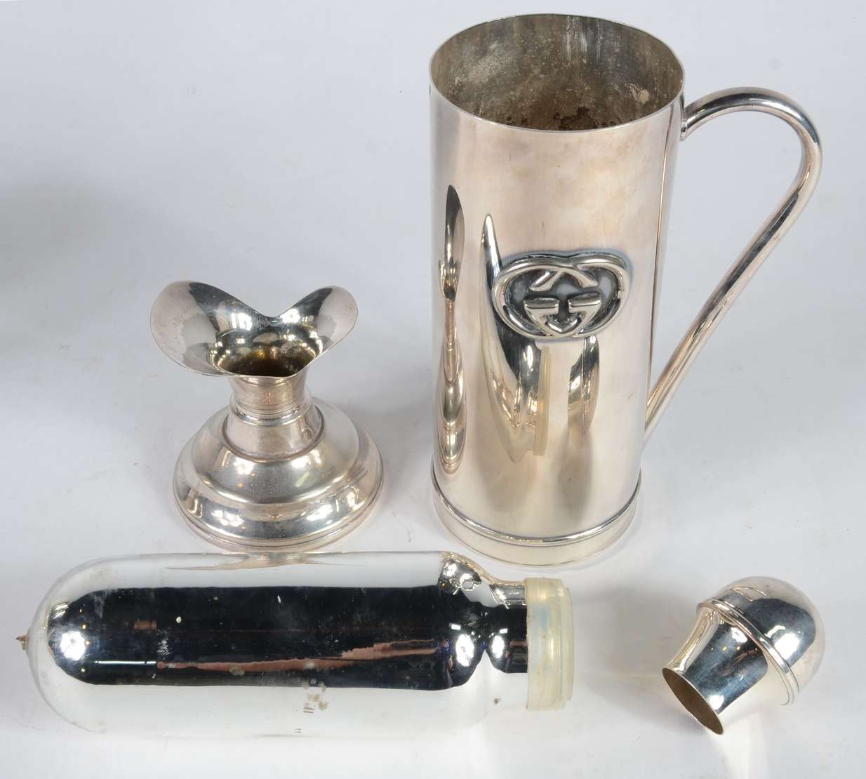 Baixela para chá e café de prata portuguesa contraste Aliança, Porto, composta de dois bules, leiteira, açucareiro e ...
