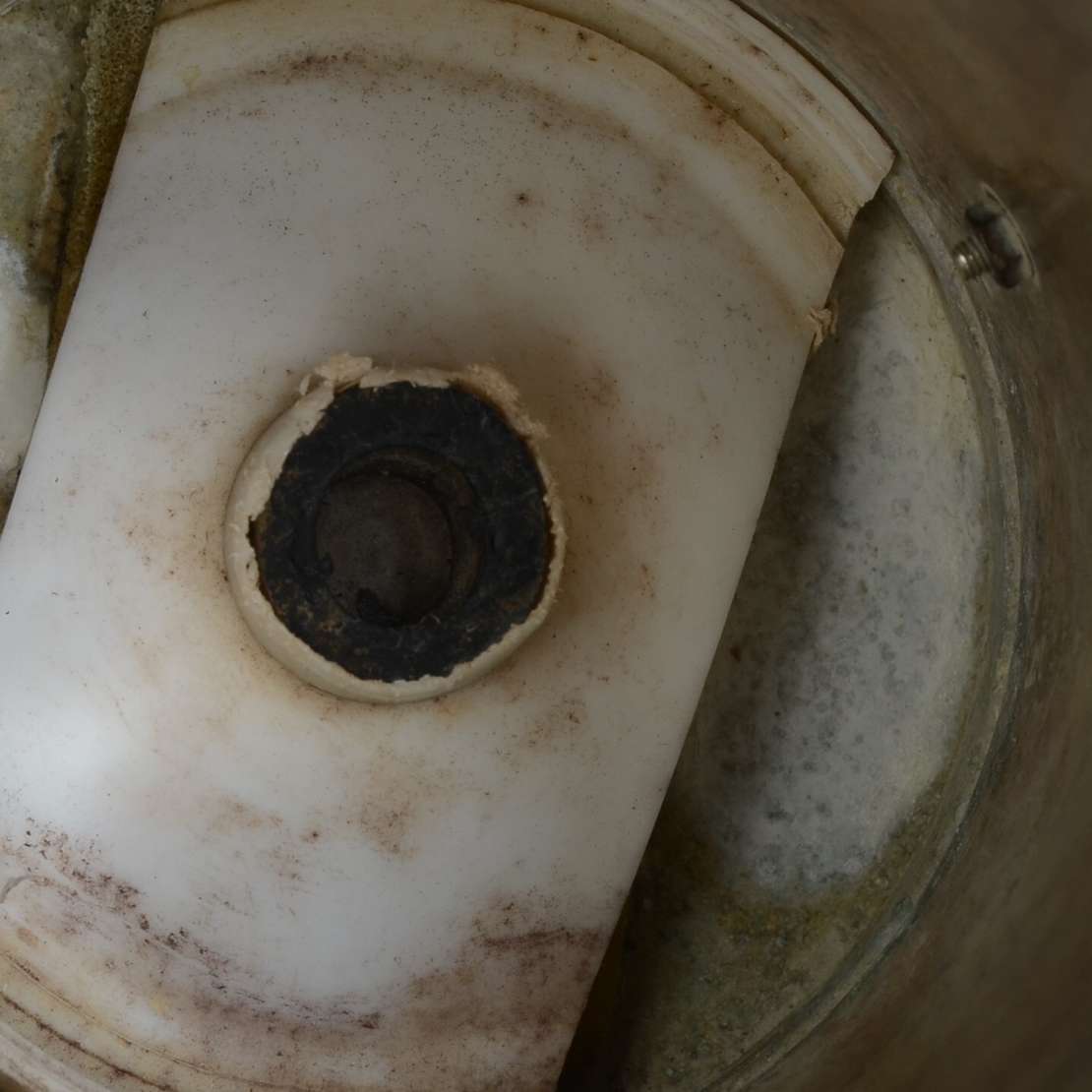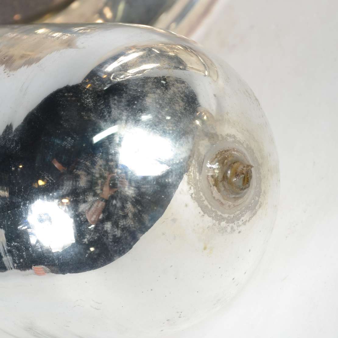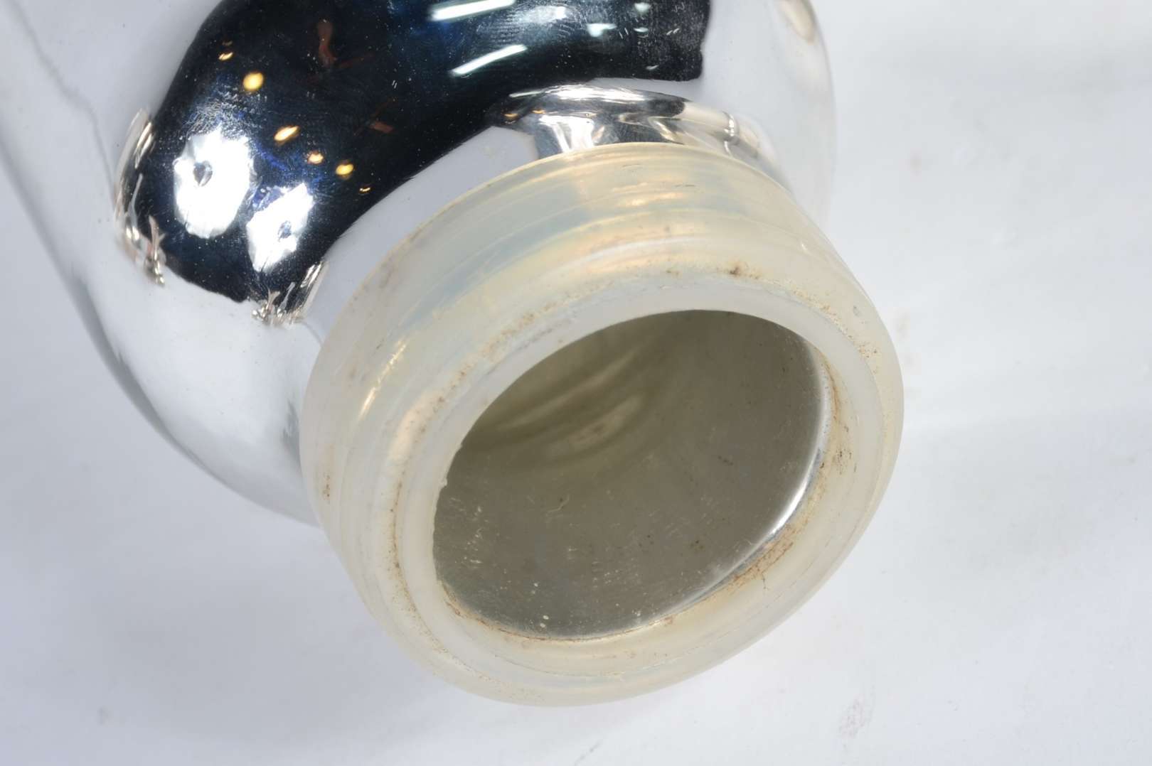 Garrafa de cristal doublé azul lapidada, bocal de metal prateado.