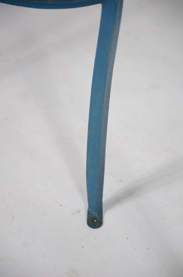 Cadeira singela de madeira dourada, encosto com palhinha sintética, assento estofado e forrado com tecido na cor azul...