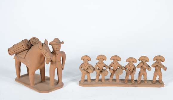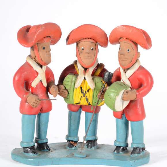 Arte popular - Escultura de barro cozido. Base colada. Um dos músicos faltando o "triângulo". Assinado.