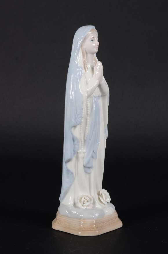 Escultura de porcelana policromada representando Virgem Maria.