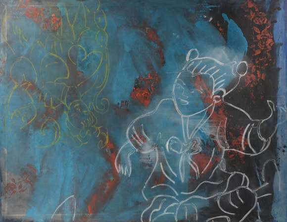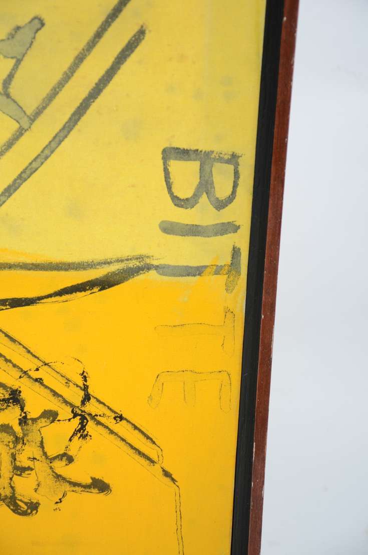 Dois quadros, um desenho e outro óleo sobre eucatex. Desgastes.