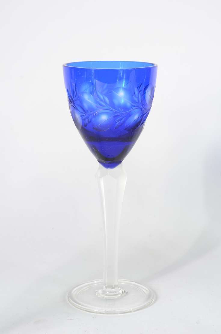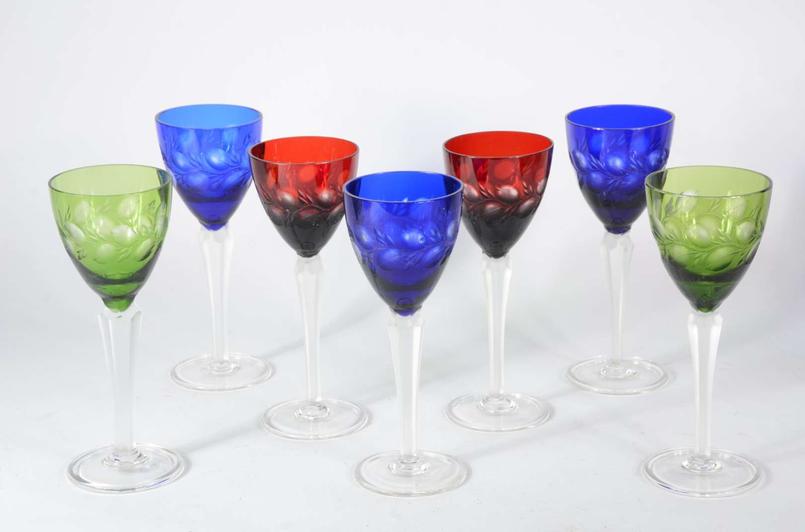 Seis flutes de cristal para champagne, 190 ml., pés coloridos.