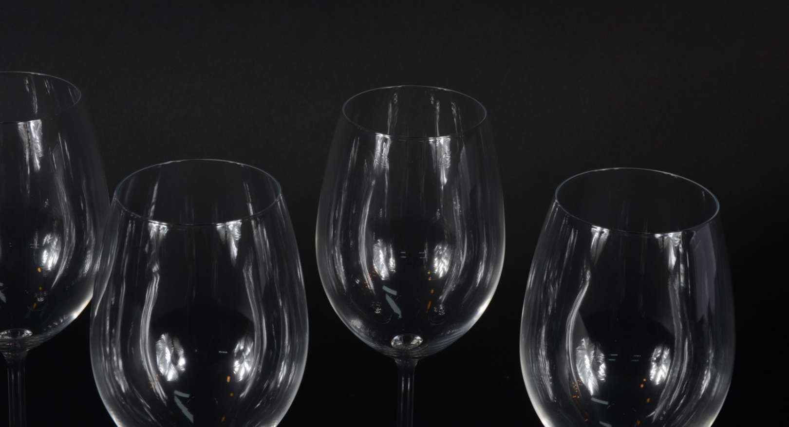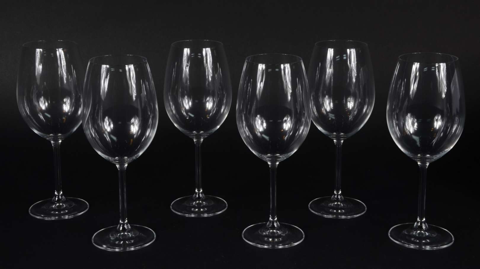 Conjunto com 7 cálices para vinho de cristal lapidado, diversas cores.