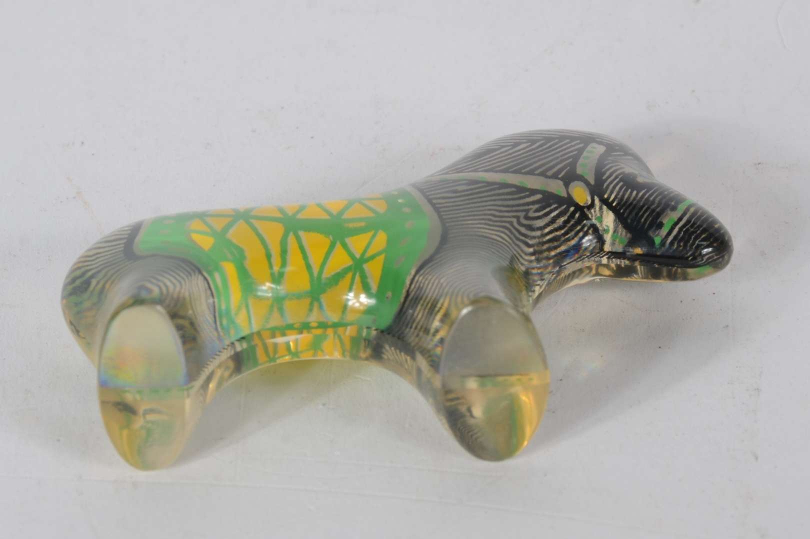 Duas peças, sendo: escultura de madeira africana e vaso de cerâmica com dois cachorros.