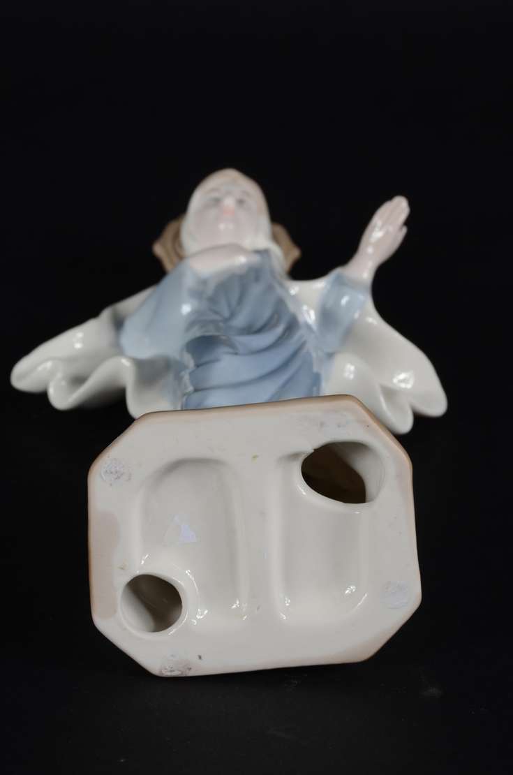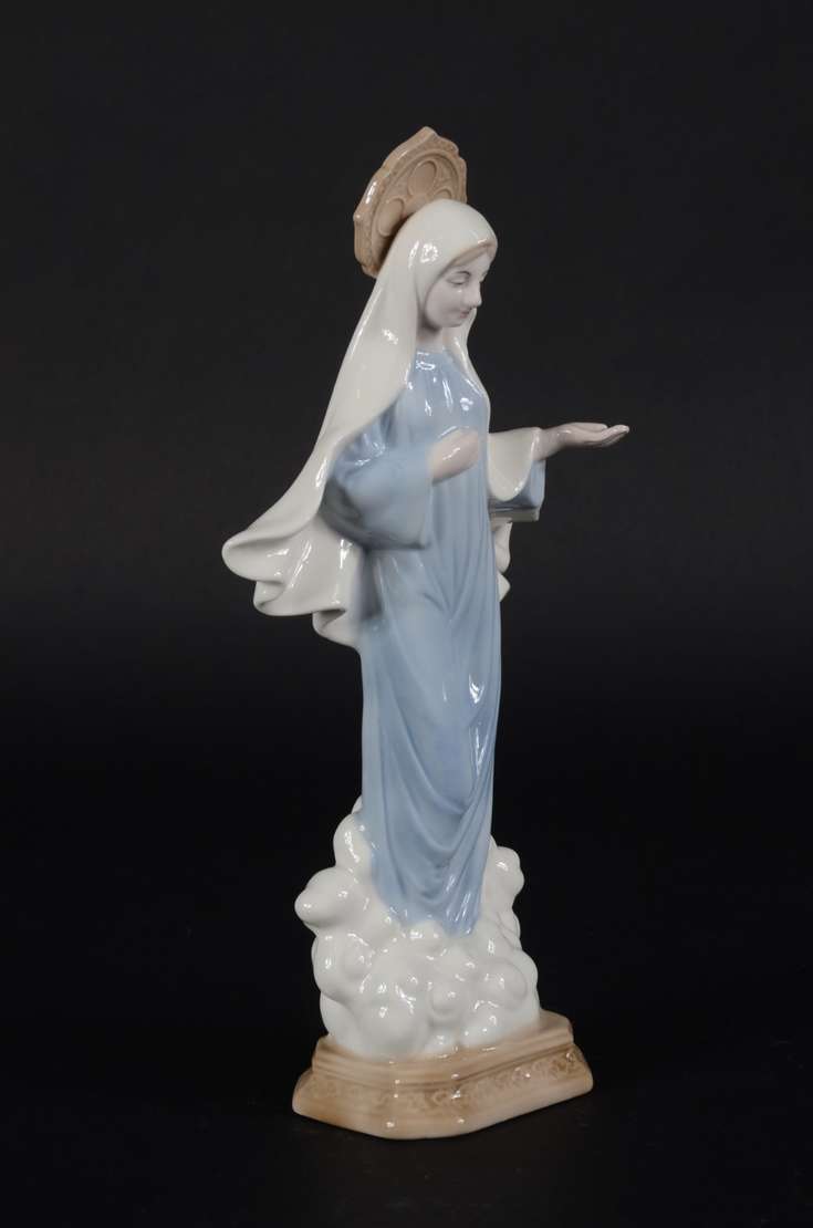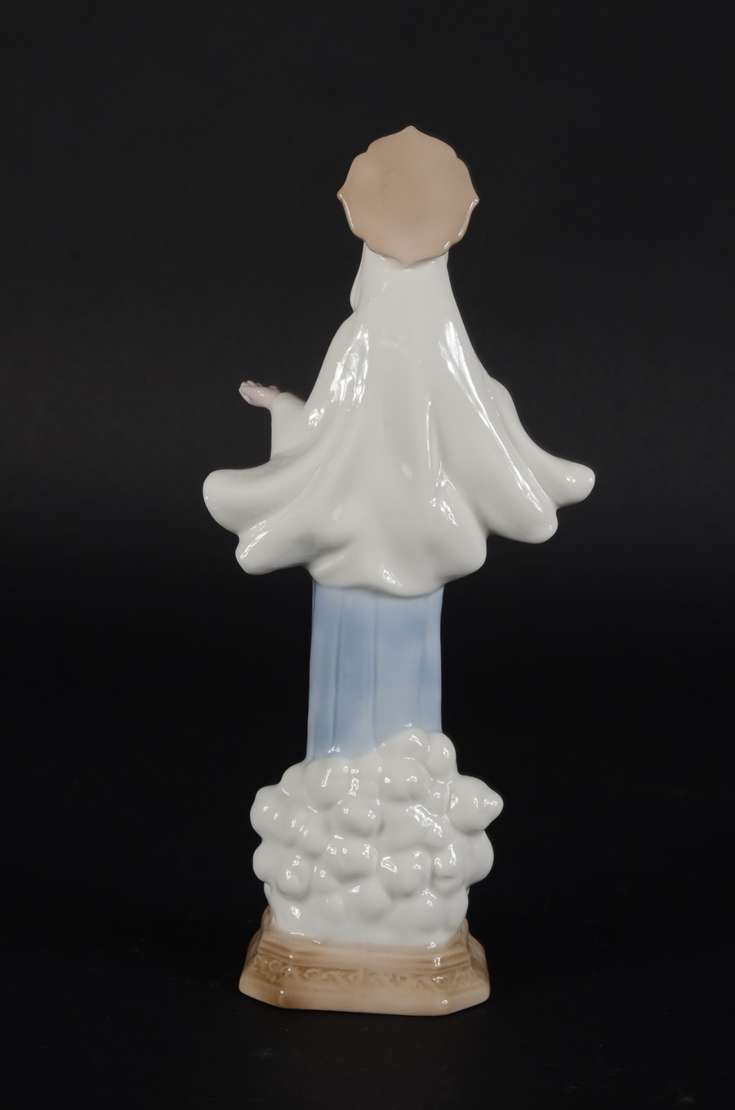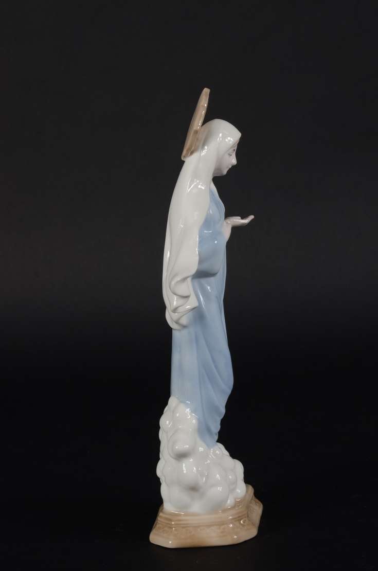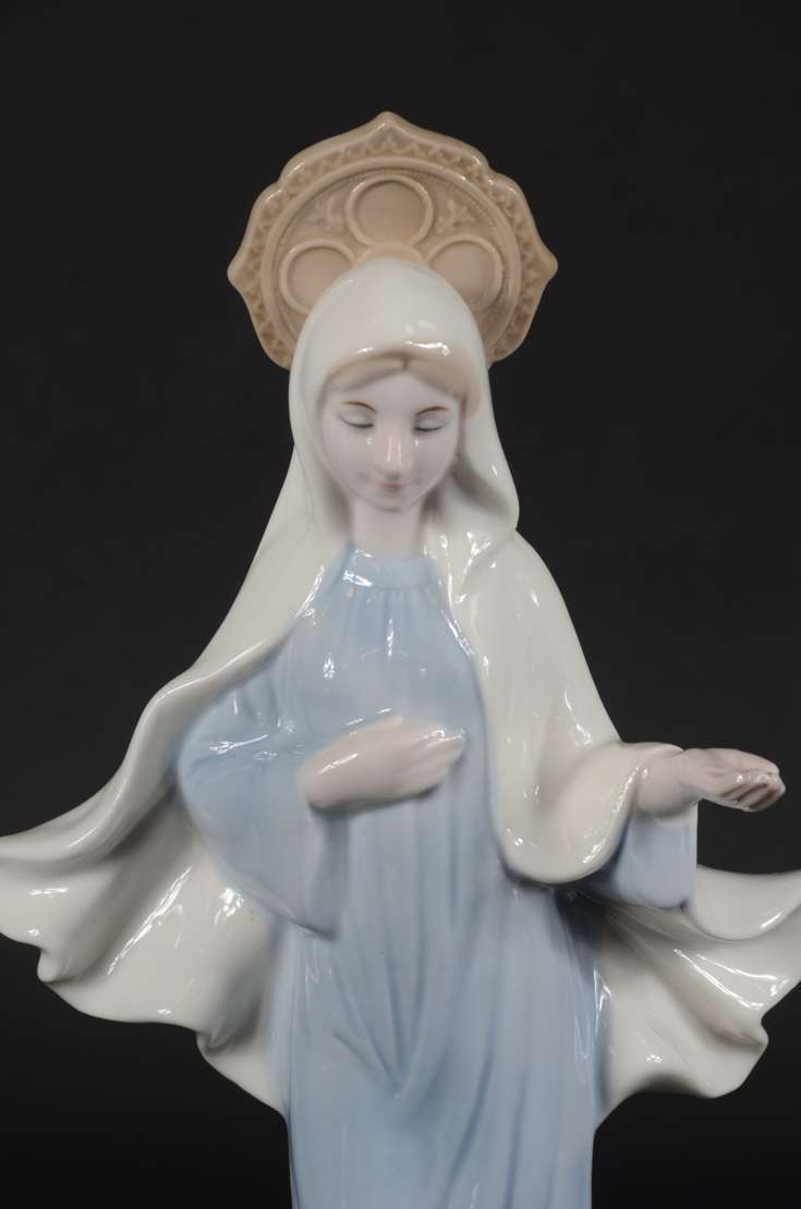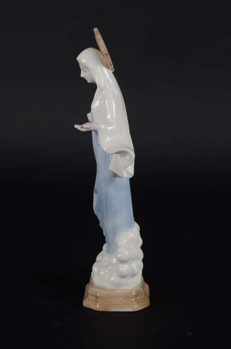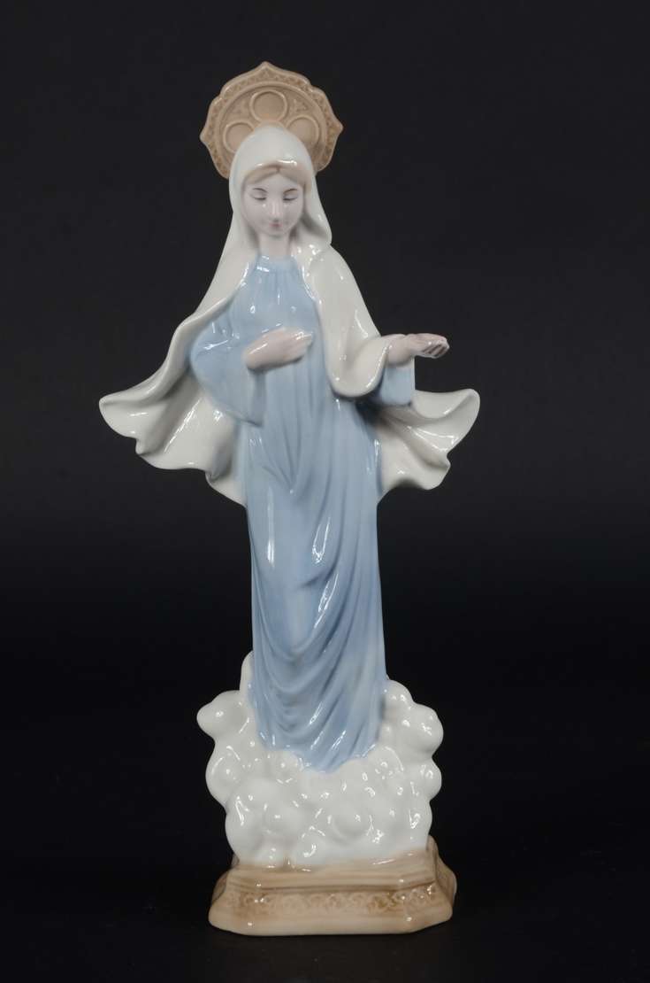 Escultura de porcelana policromada representando Nossa Senhora das Graças.