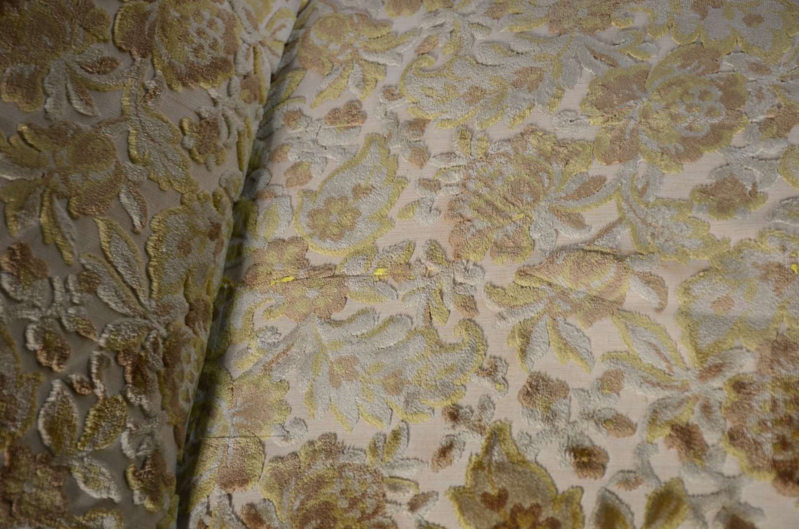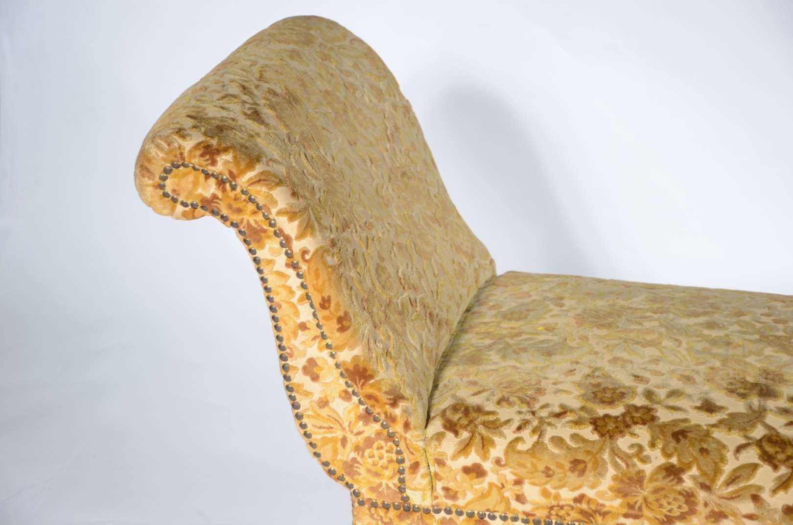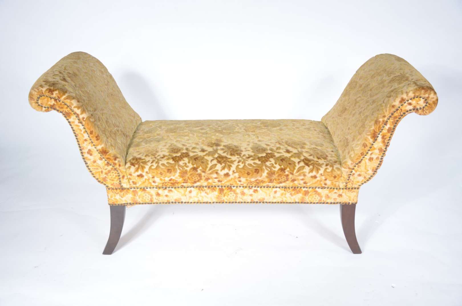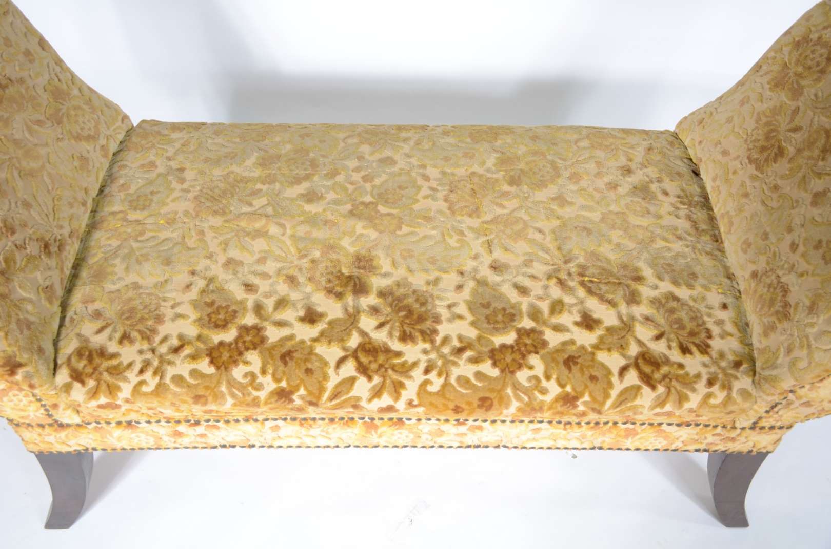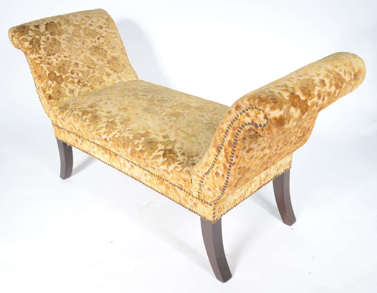 Bergere estofada e forrada em tecido verde. Desgastes.