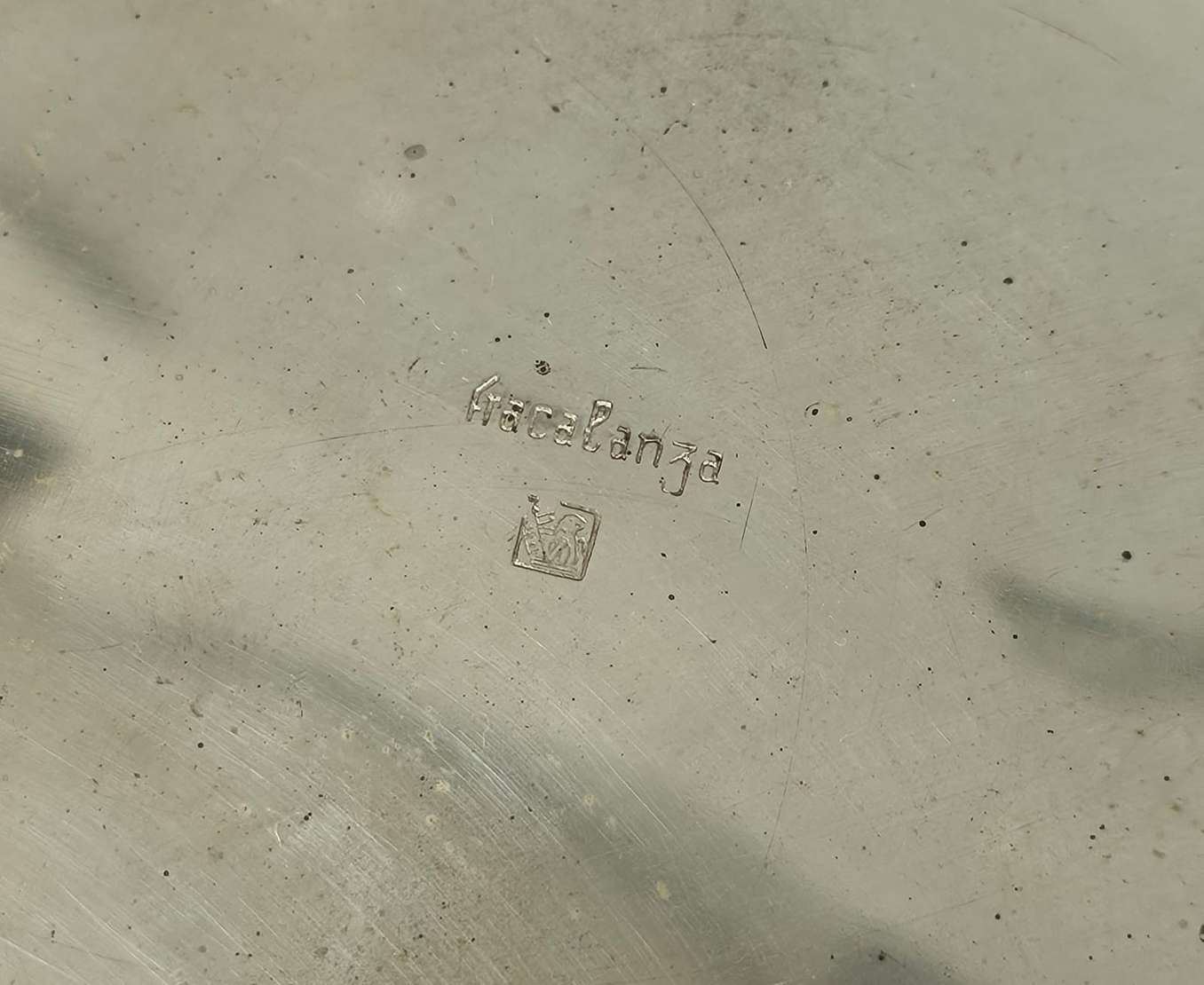 Salva de prata contraste 833 mls, galeria vazada com inscrição no fundo - "Ao comandante Roberto C. Candido". Peso da...