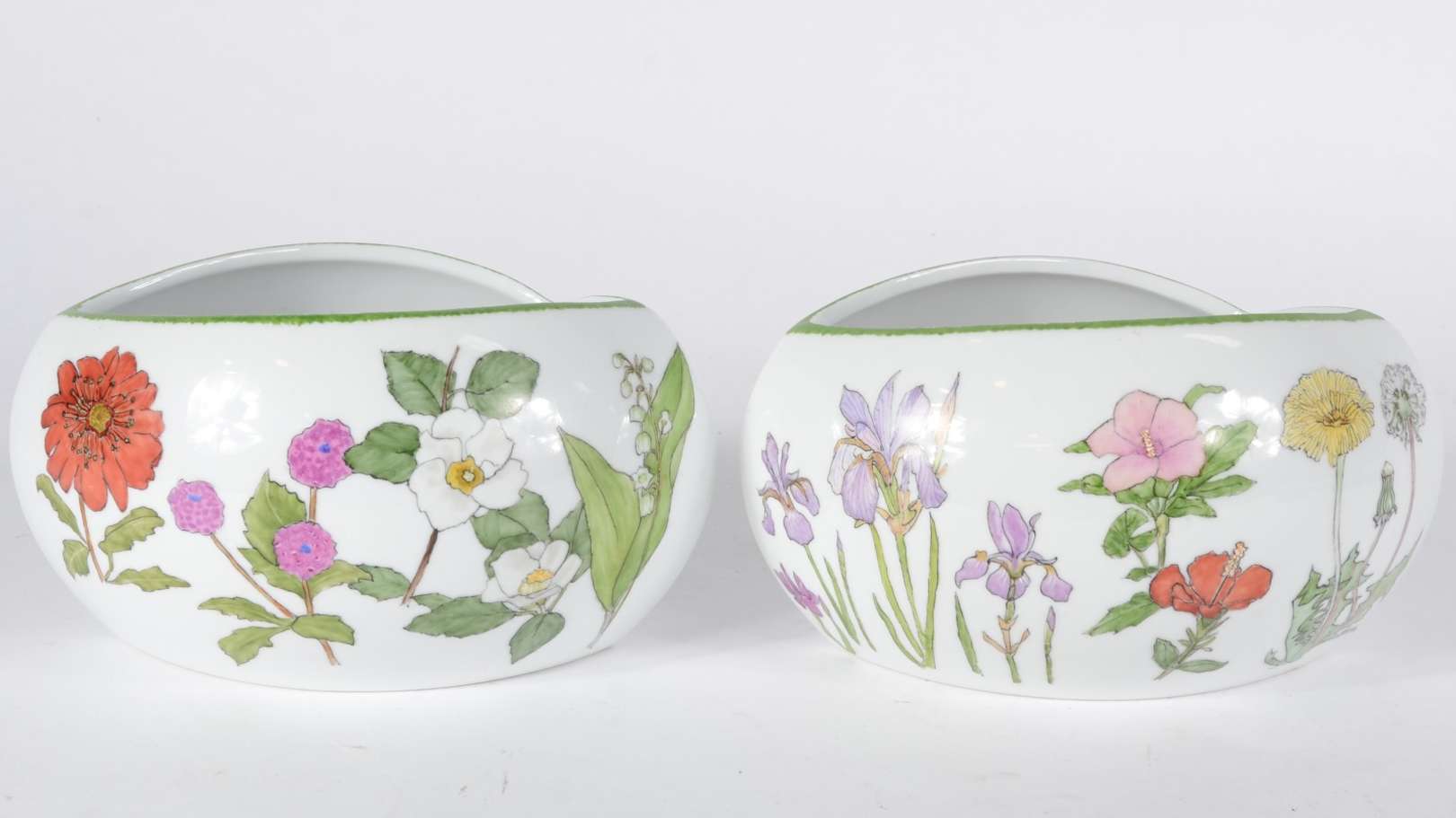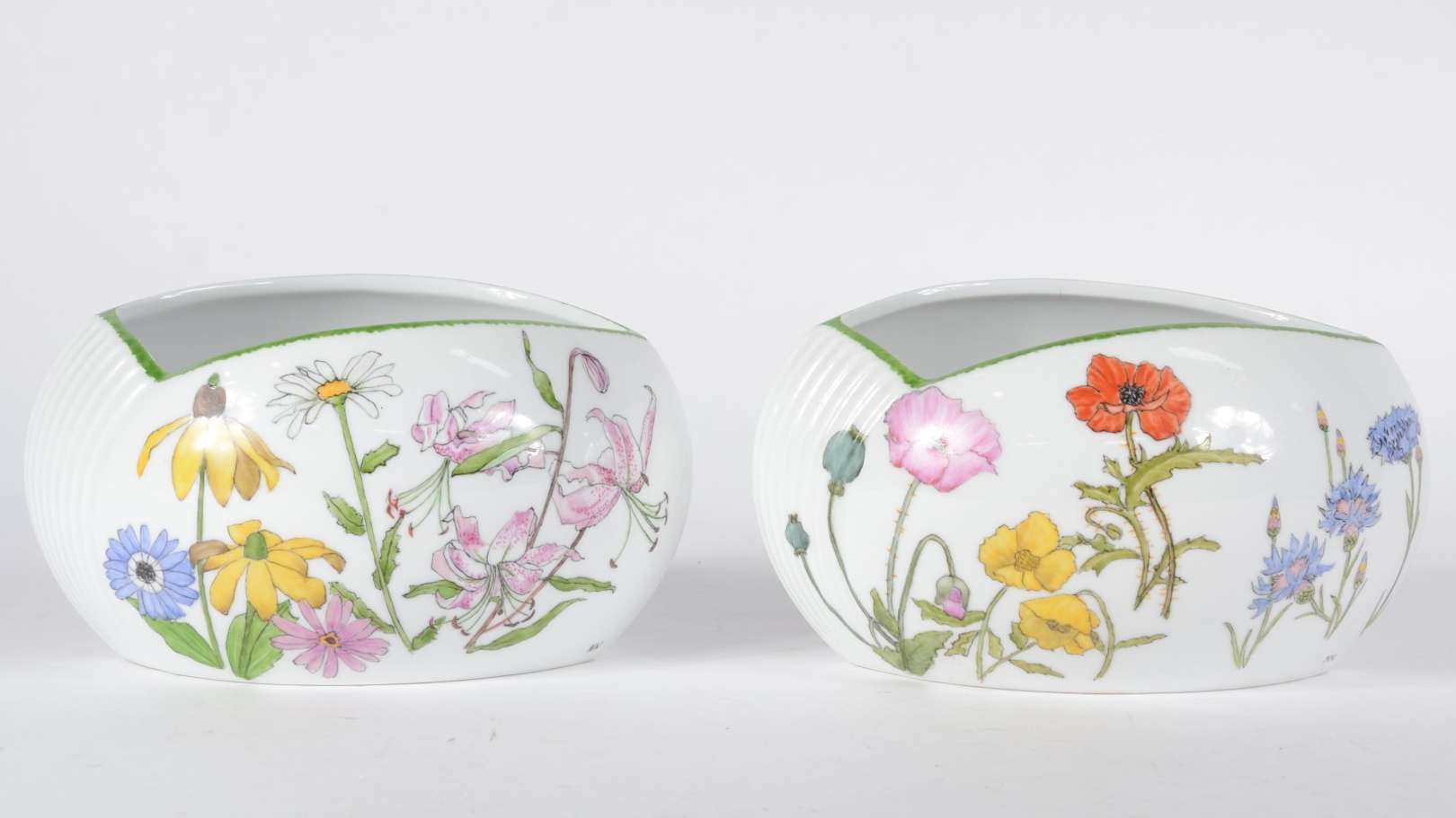 Serviço de chá de porcelana alemã da Bavaria, Royal Heidelberg, Winterling, decorada com arranjos florais em policrom...