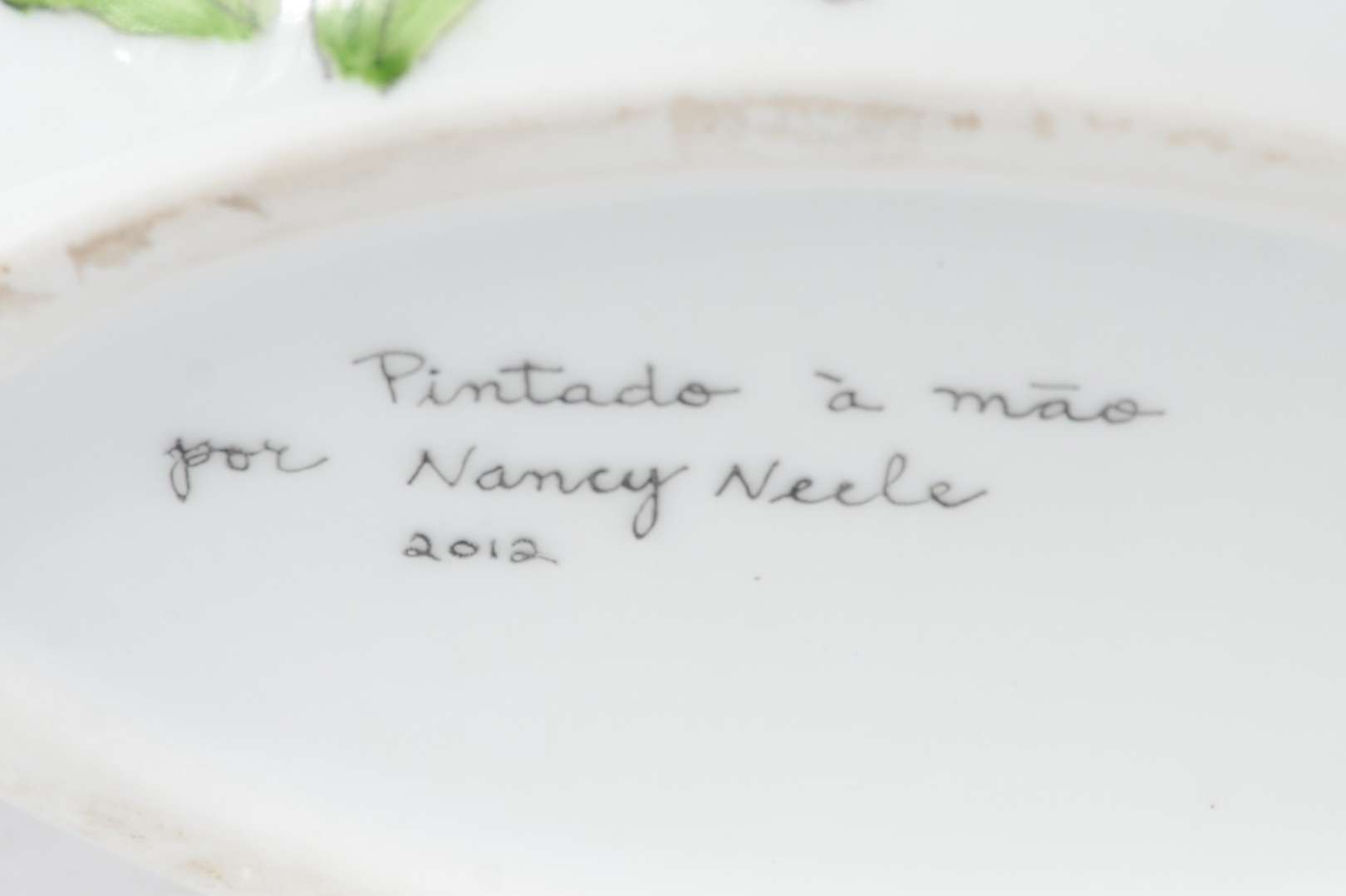 Aparelho de jantar de porcelana portuguesa, borda com guirlandas florais em tons de amarelo e verde, composto de: 22 ...
