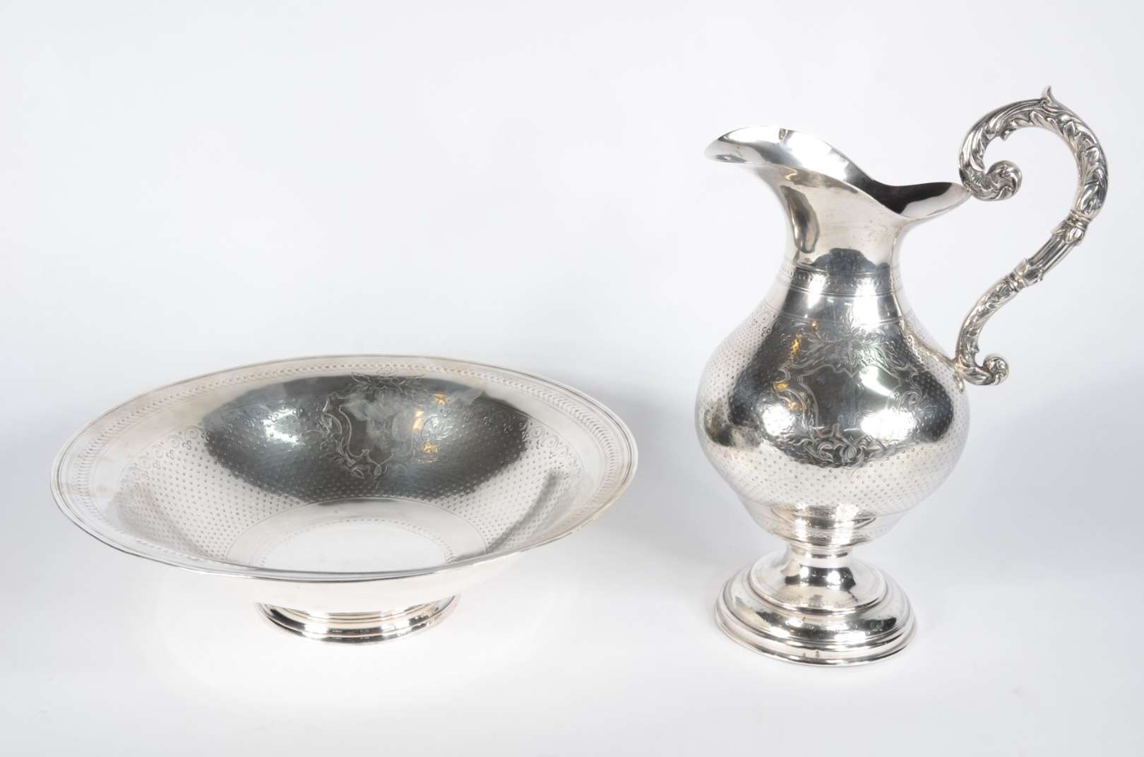 Baixela de jantar de prata 835 mls. prateiro Correa, borda perolada, composto de: sopeira com concha, 8 travessas e m...