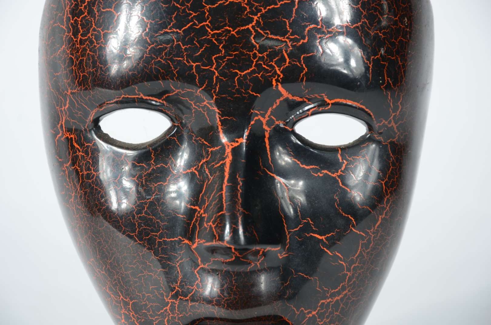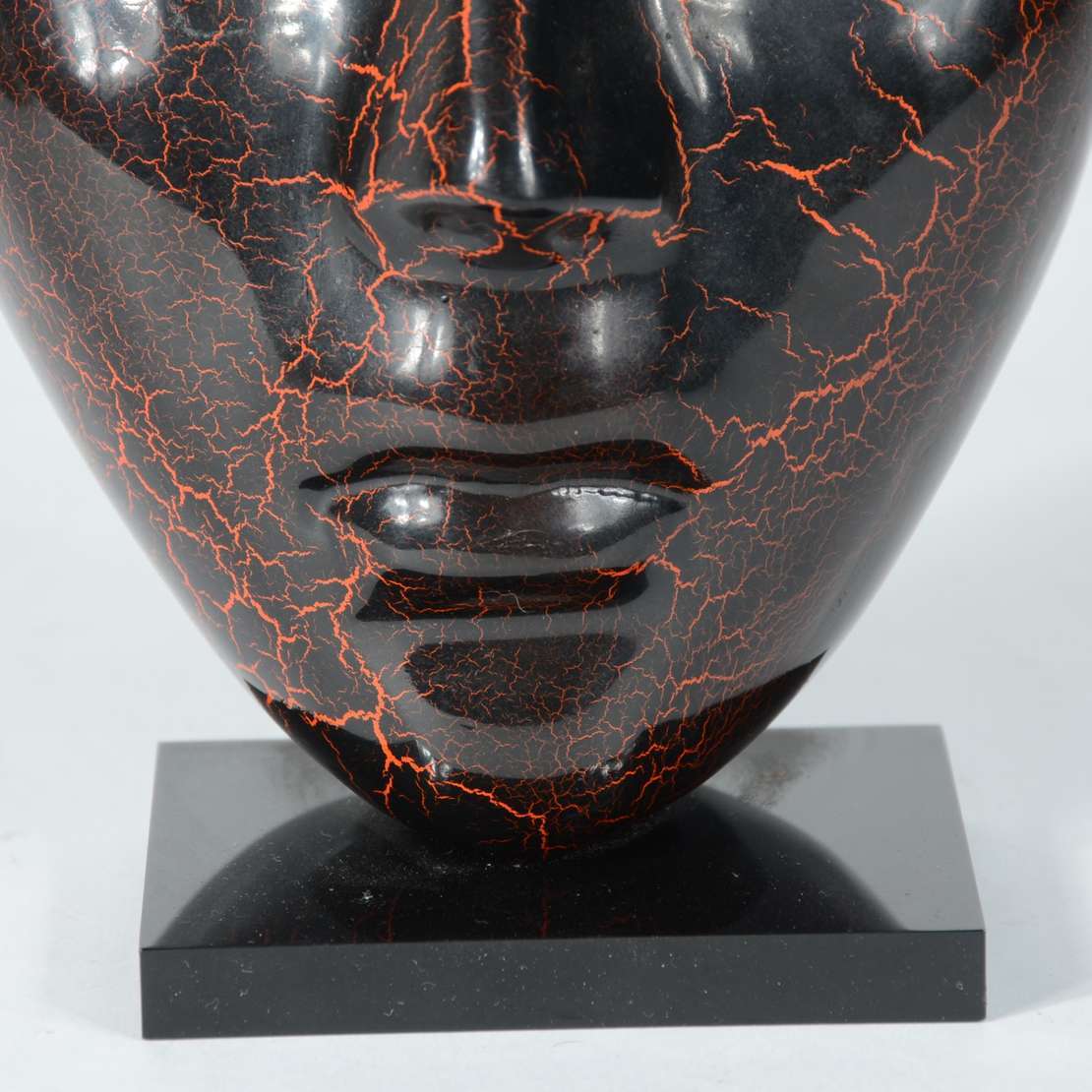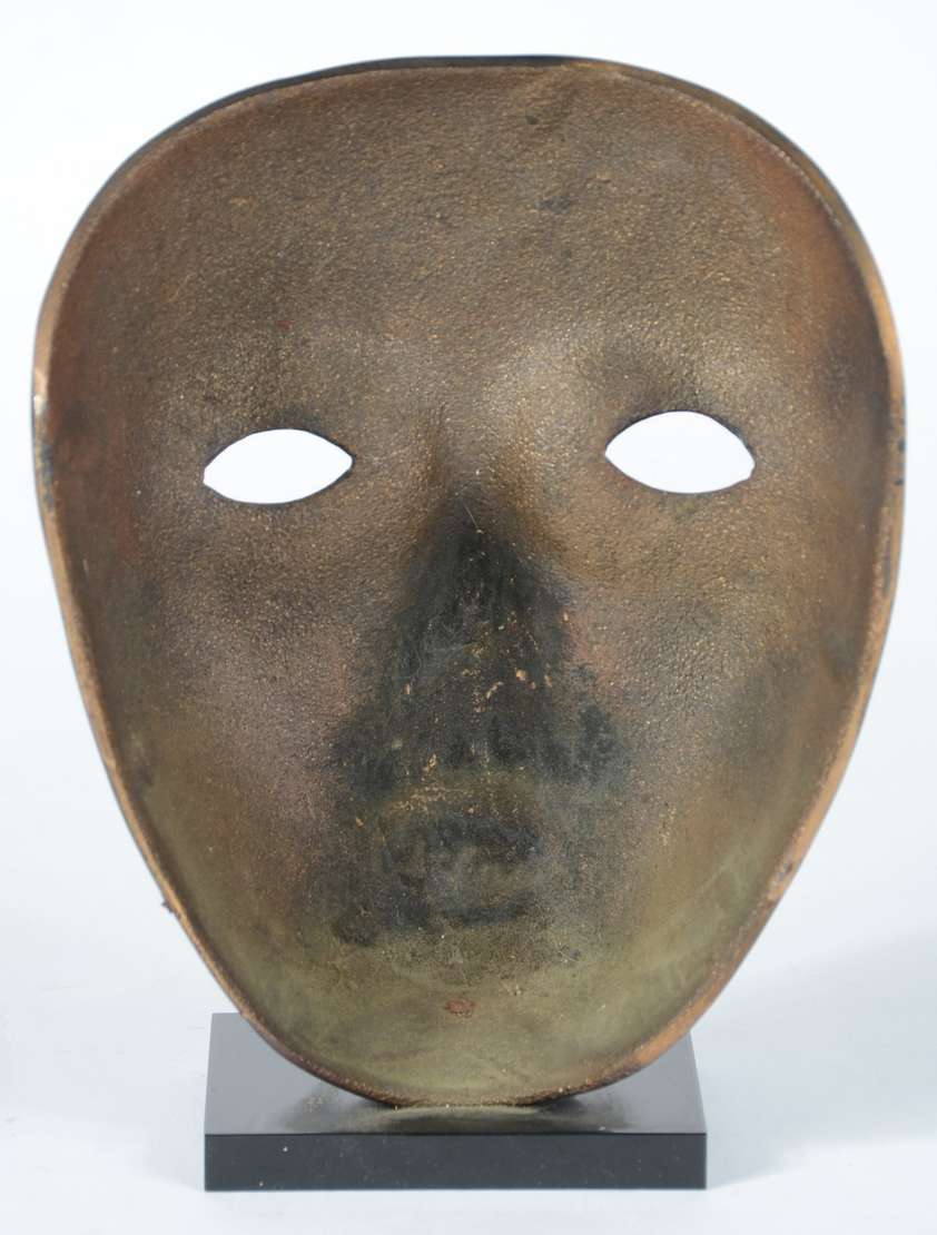 Escultura de bronze patinado na forma de máscara.