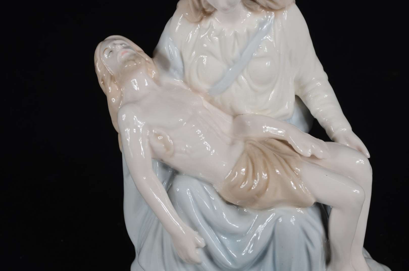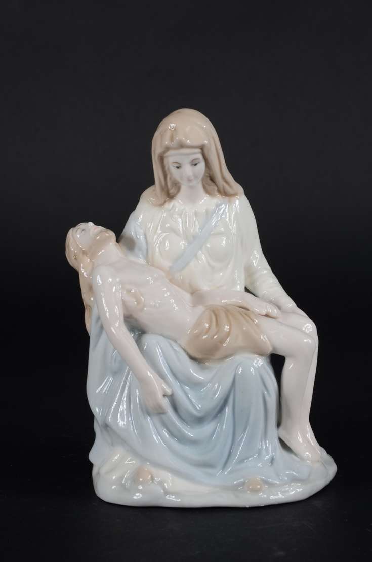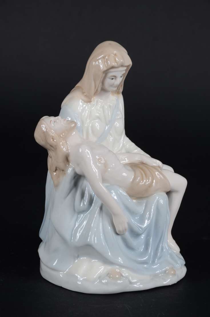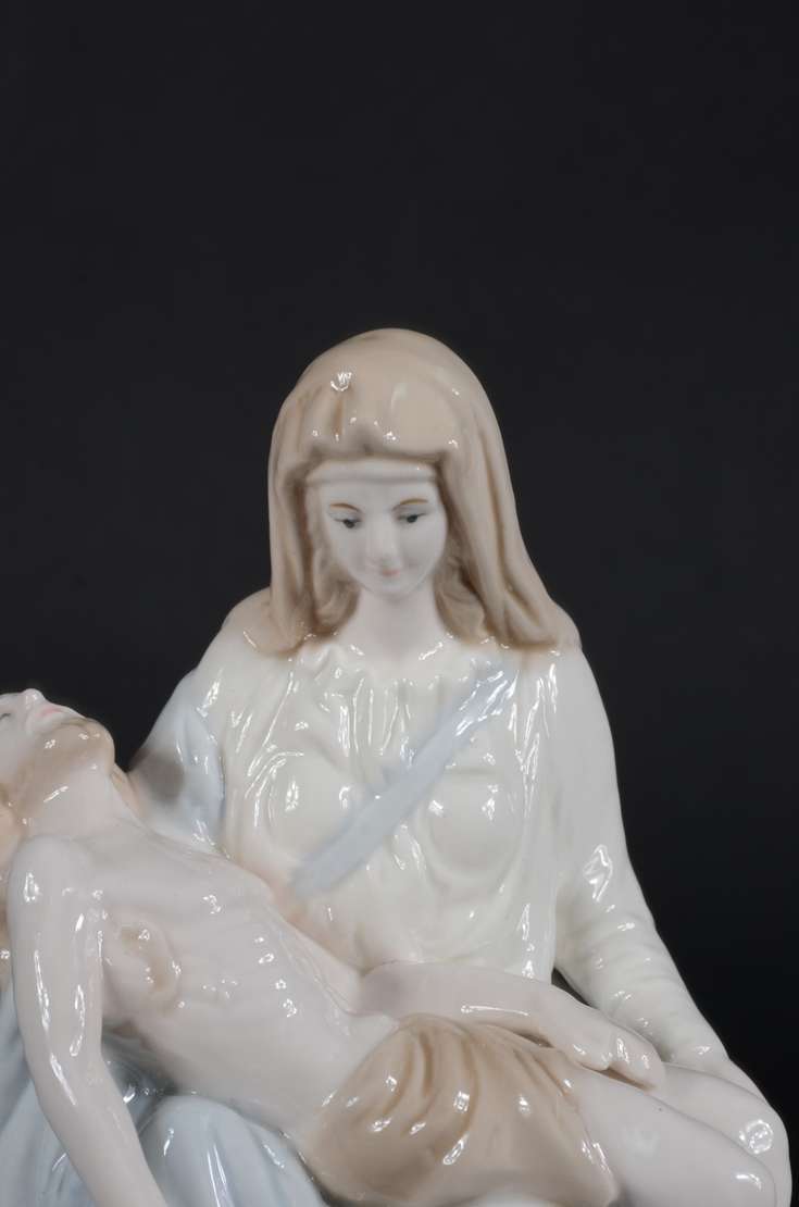 Escultura de porcelana policromada representando Nossa Senhora das Graças.