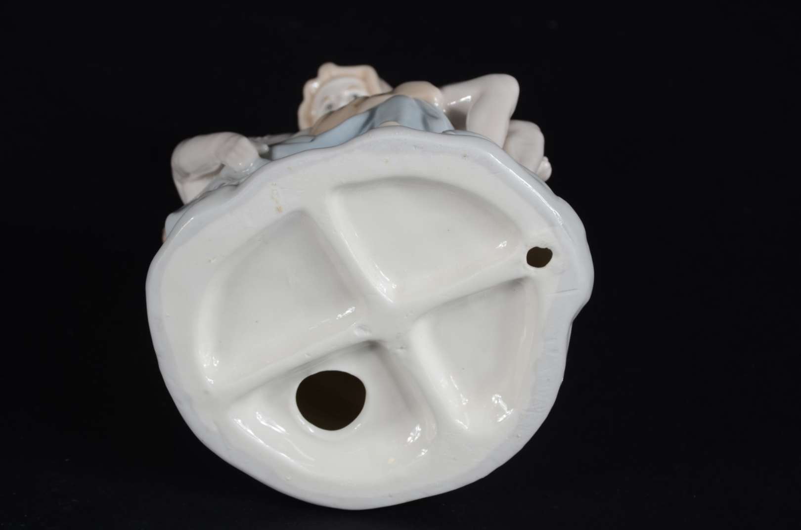 Escultura de porcelana oriental representando Buda da Fertilidade em policromia com realces dourados. Assinada. Desga...