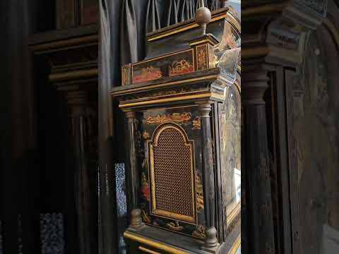 Relógio de parede com caixa de madeira, detalhes torneados. Faltando acabamento na parte inferior. Desgastes no mostr...