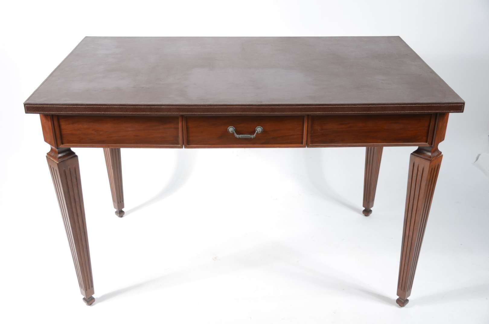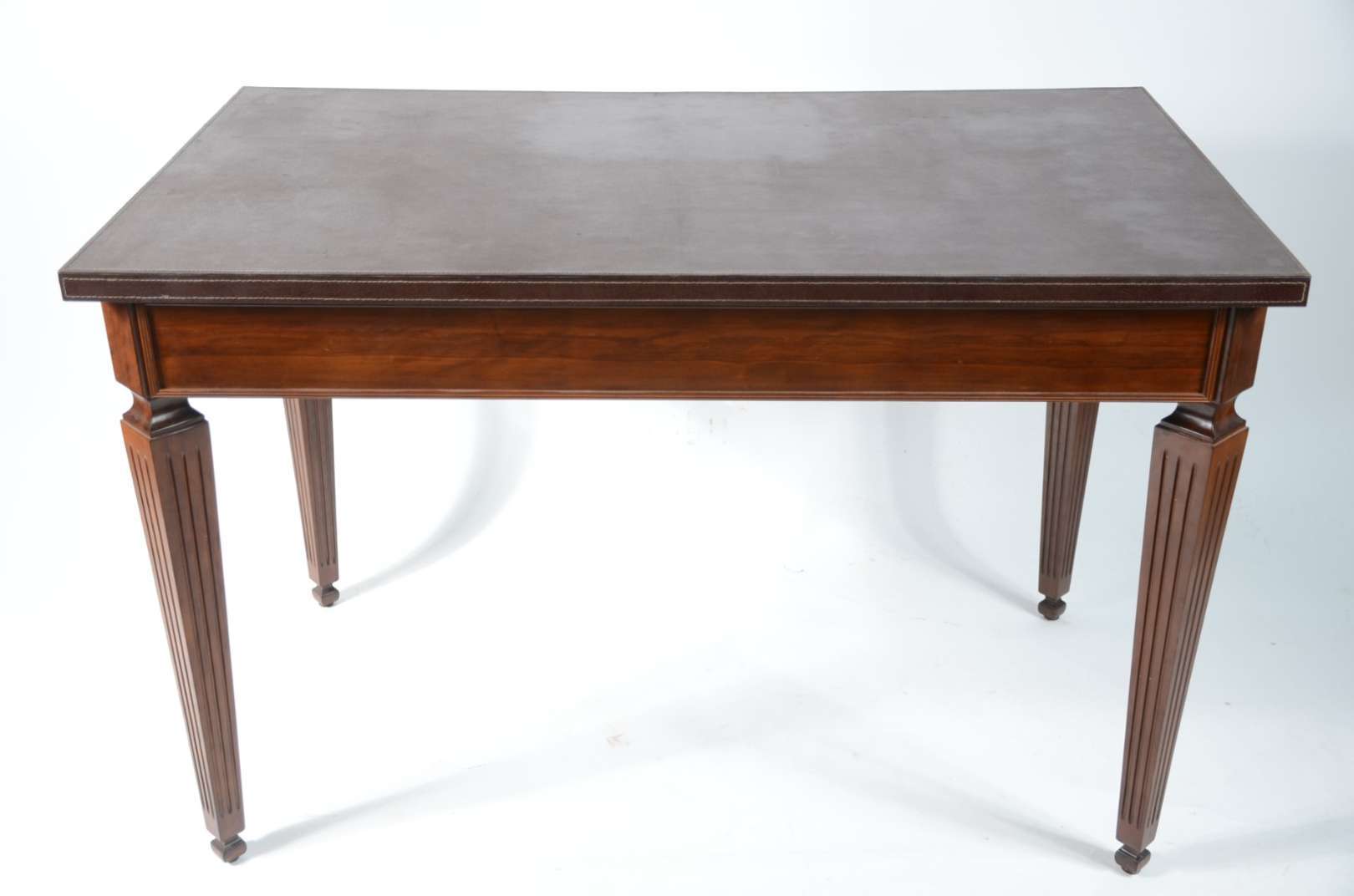 Mesa de jantar de madeira nobre, estilo Luis XV, tampo retangular com duas tábuas extensoras (med. 1,05 m. x 0,40 cm,...