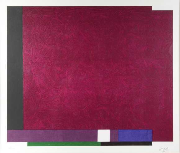 COMPOSIÇÃO GEOMÉTRICA - Serigrafia em cores sobre papel, cor predominante, vinho. Assinado e datado no canto inferior...