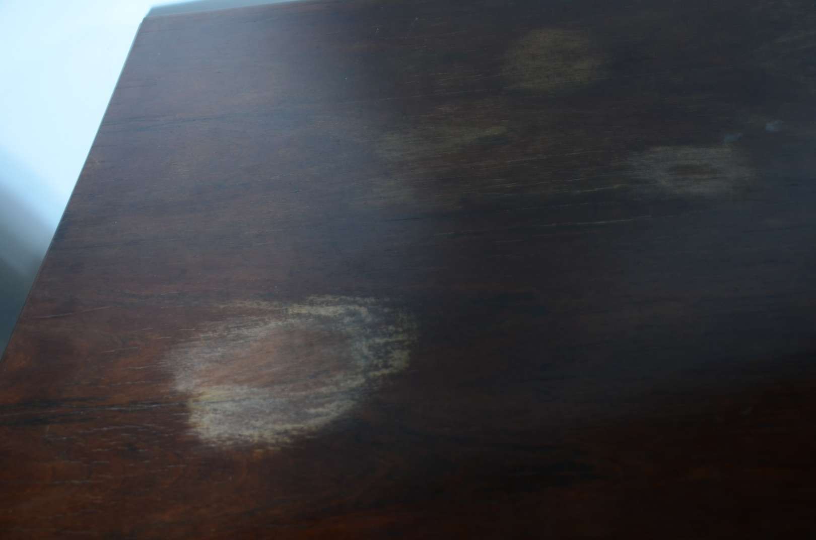 Mesa de centro de madeira nobre, pernas retas.