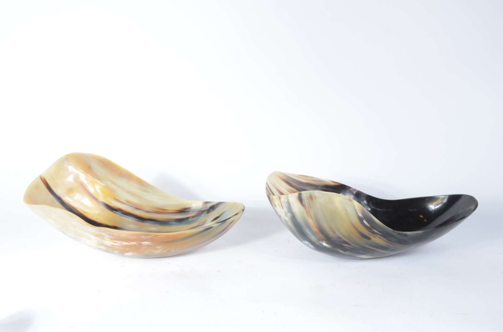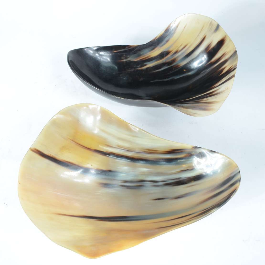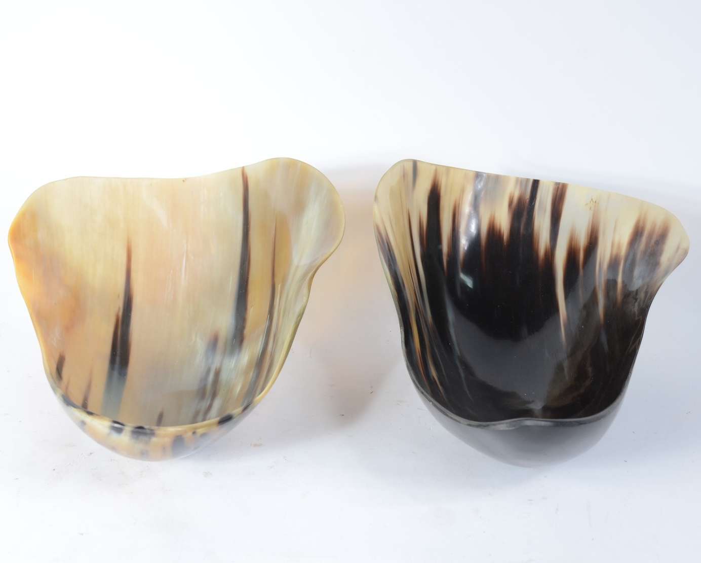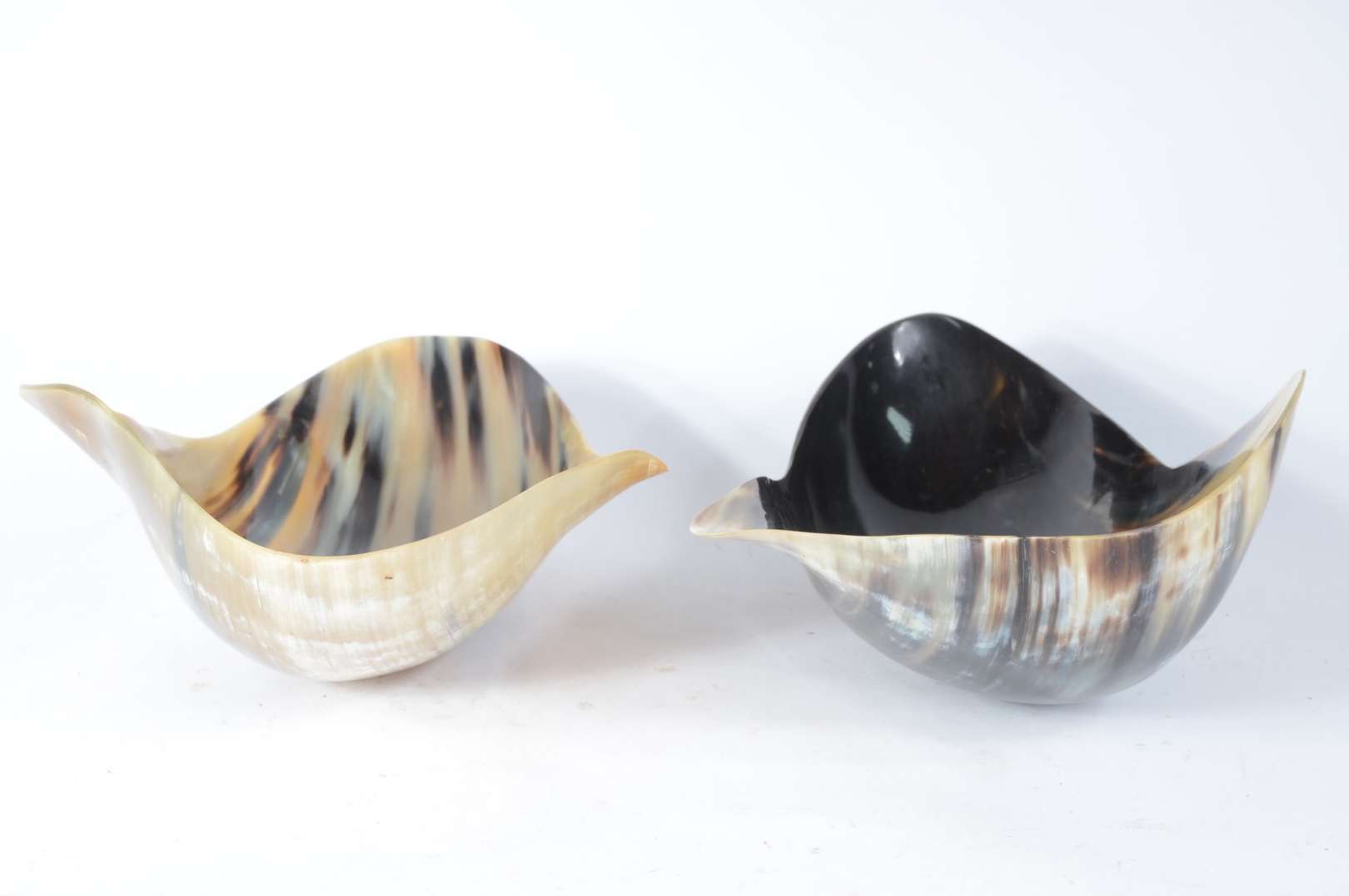 Par de bowls feitas em placa inteiriça de osso, sem emendas.