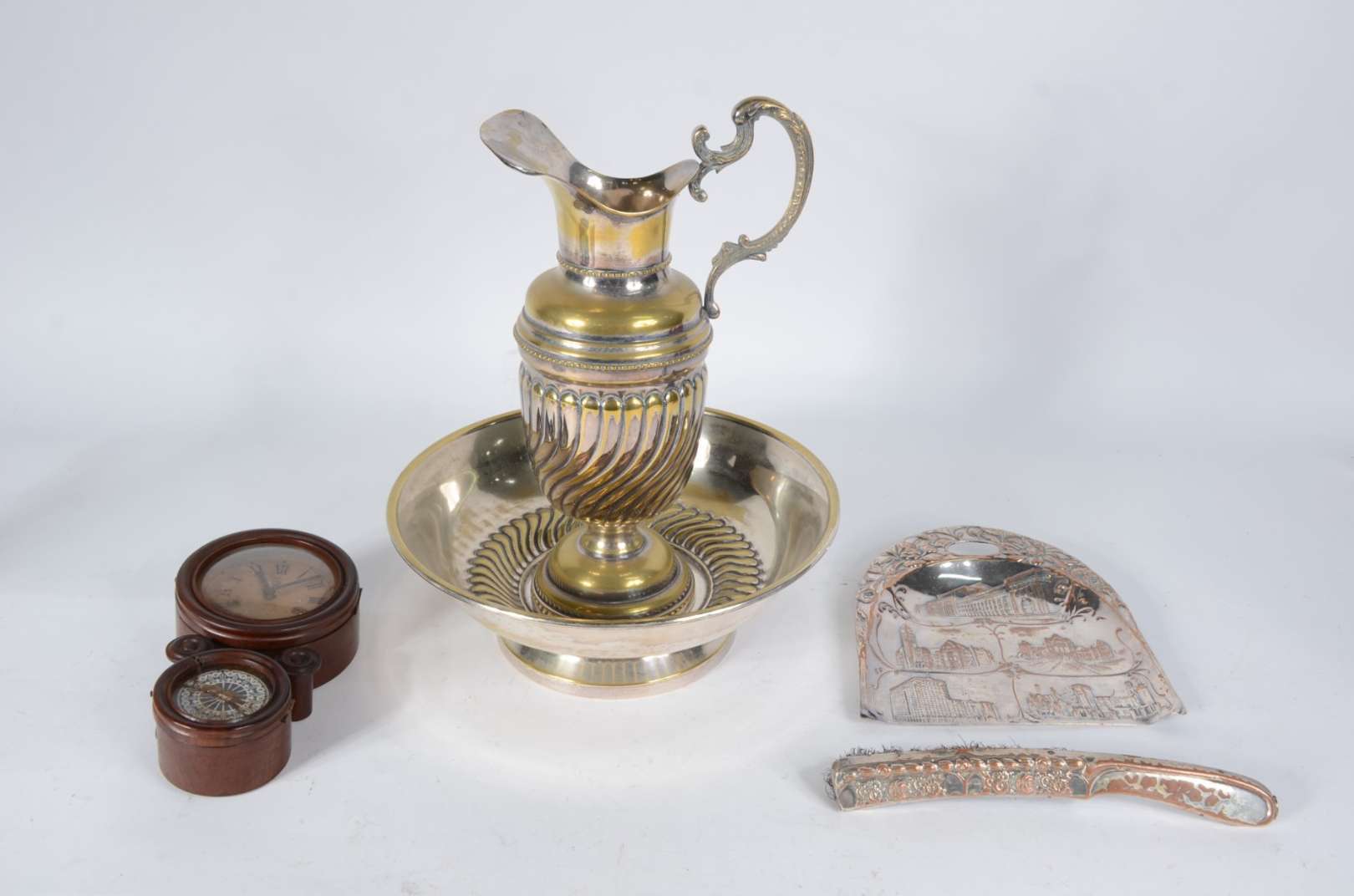Diversas peças, sendo: caixa porta jóias de madeira e par de serre livres com figuras de índios (um com a lança colada)