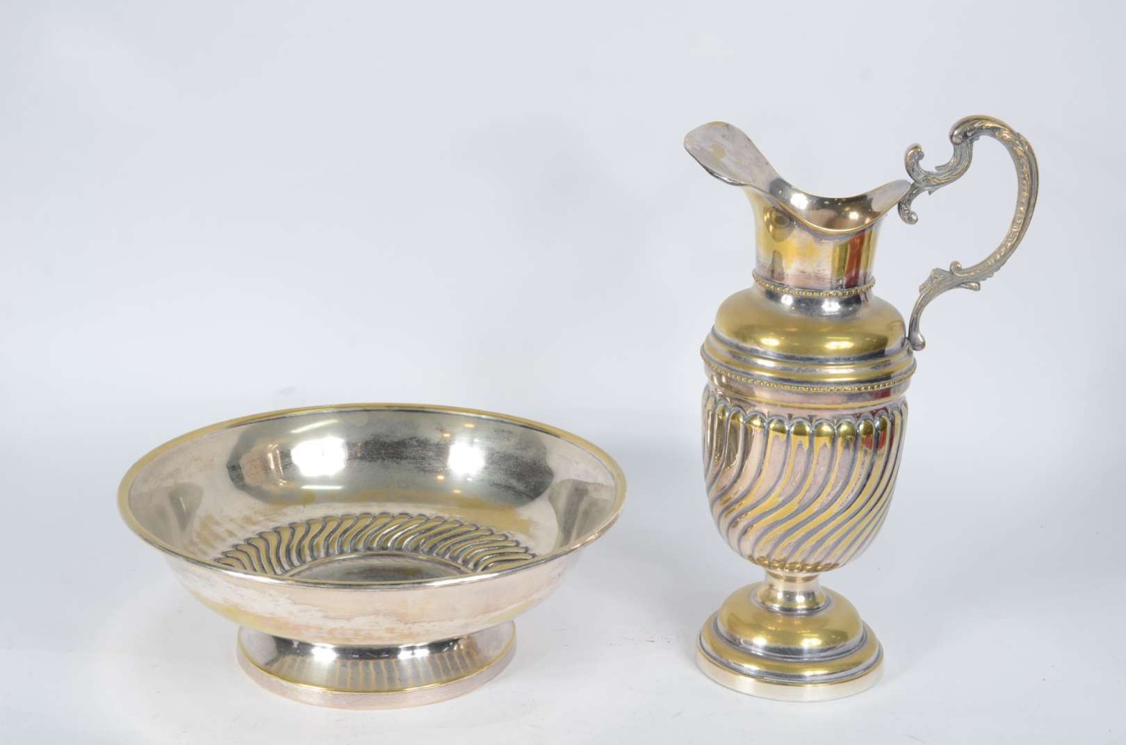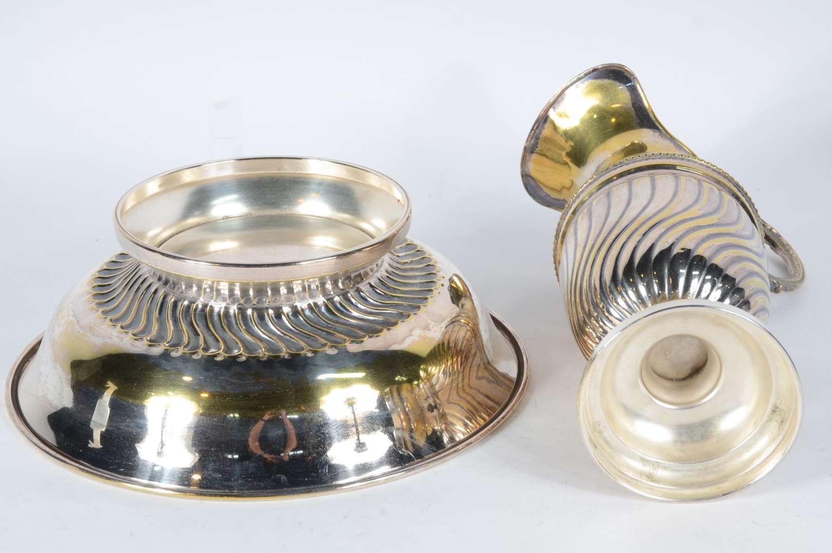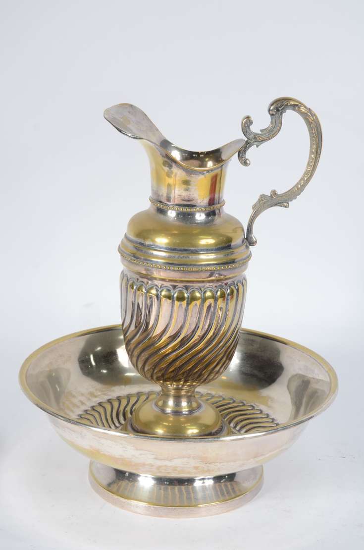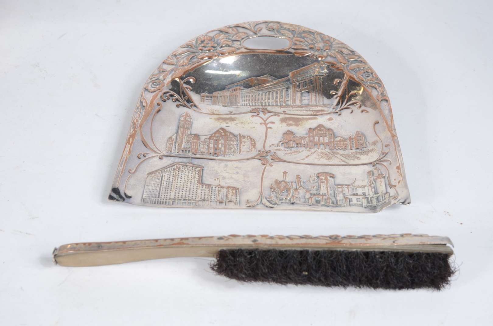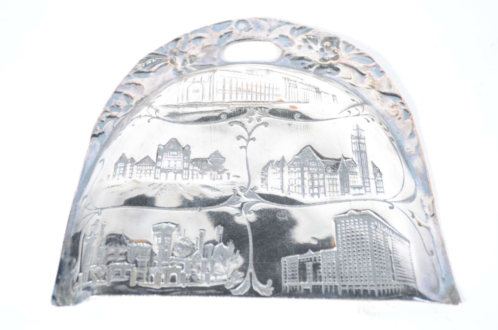 Conjunto de 6 descansos de talheres de metal prateado e pequena placa de bronze. Total 7 peças.