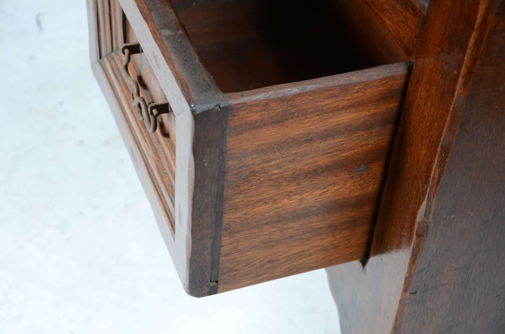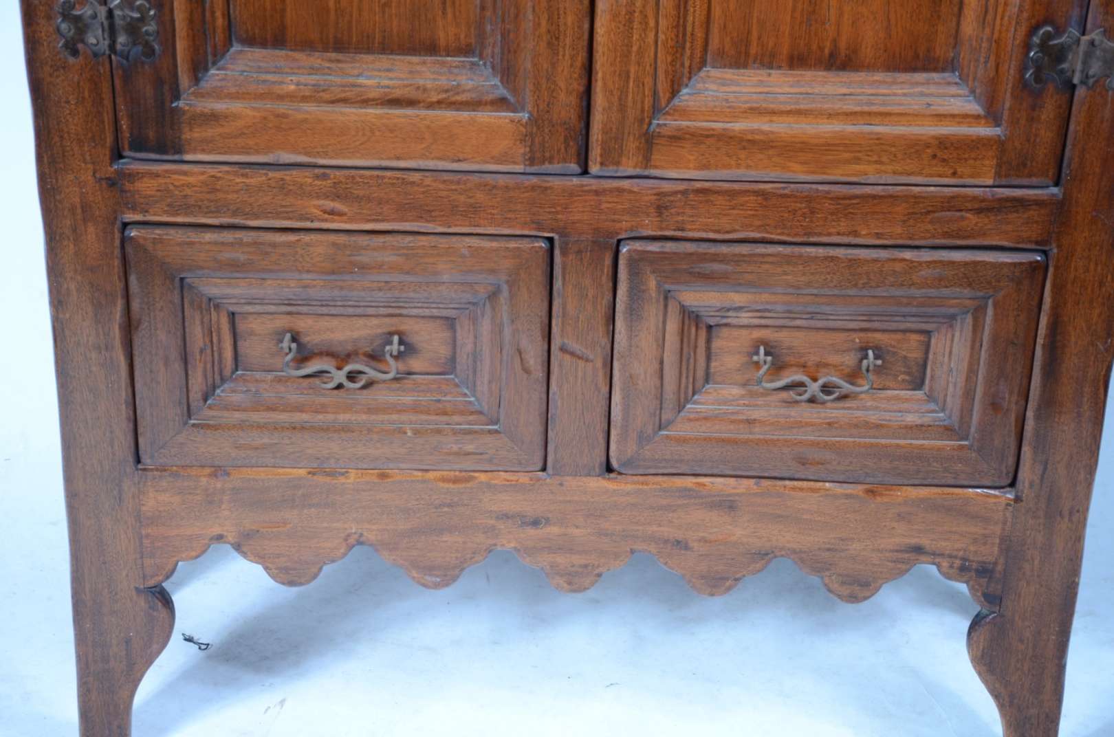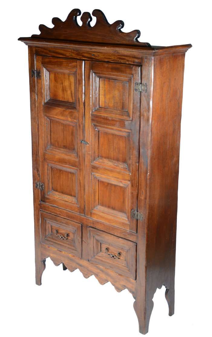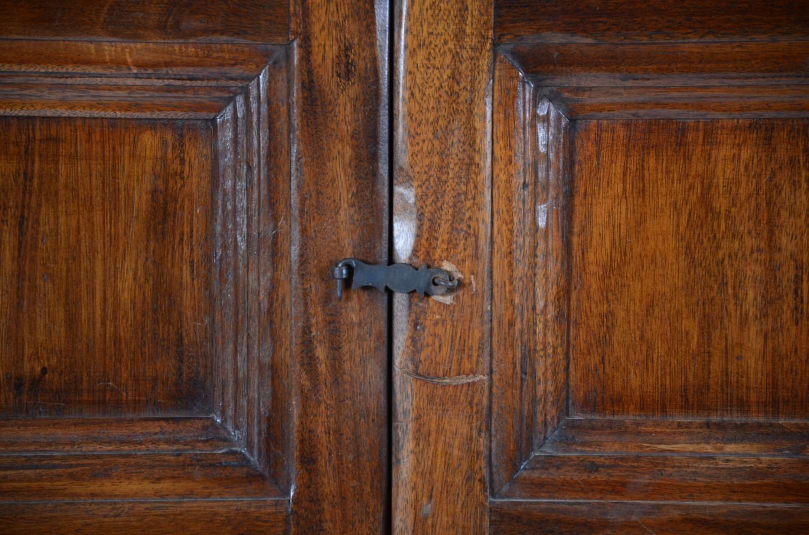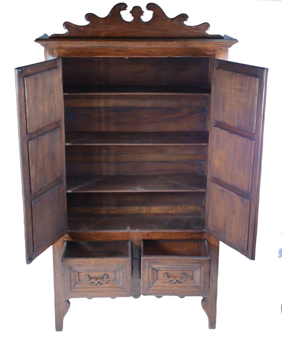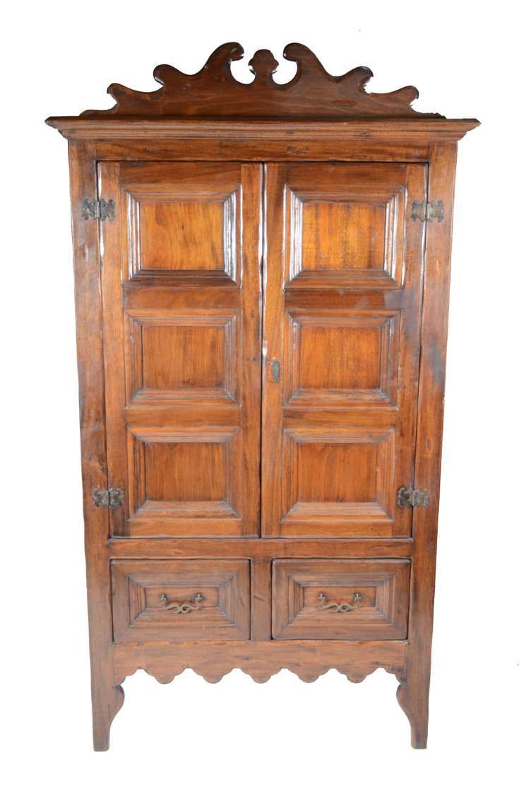 Arca de madeira nobre com 2 portas almofadadas e 1 gavetão na parte inferior