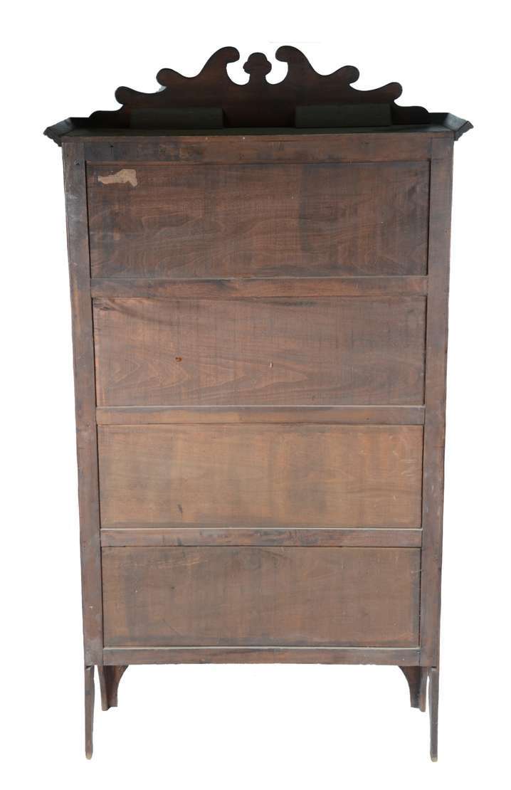 Vitrine de madeira nobre, interior com prateleira uma prateleira de vidro e fundo espelhado e pernas torneados.