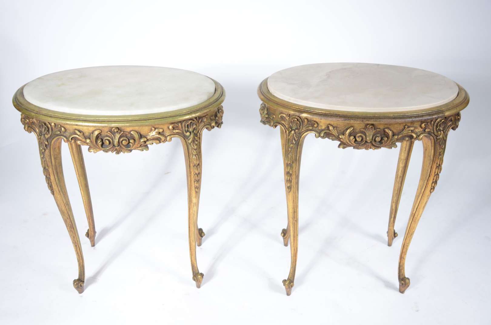 Mesa auxiliar de madeira nobre, tampo recortado apoiado em coluna central entalhada terminando em 3 pernas recurvas c...
