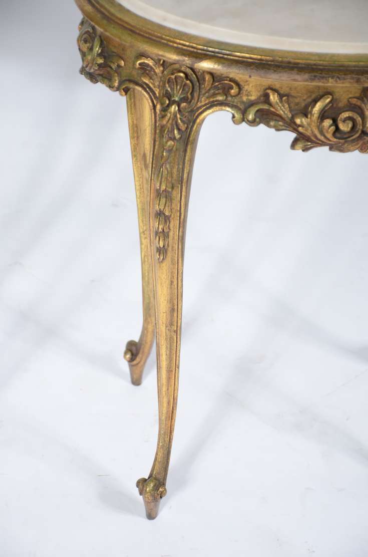 Mesa de centro de madeira nobre com tampo de marmore. Um dos pés esta quebrado e colado.