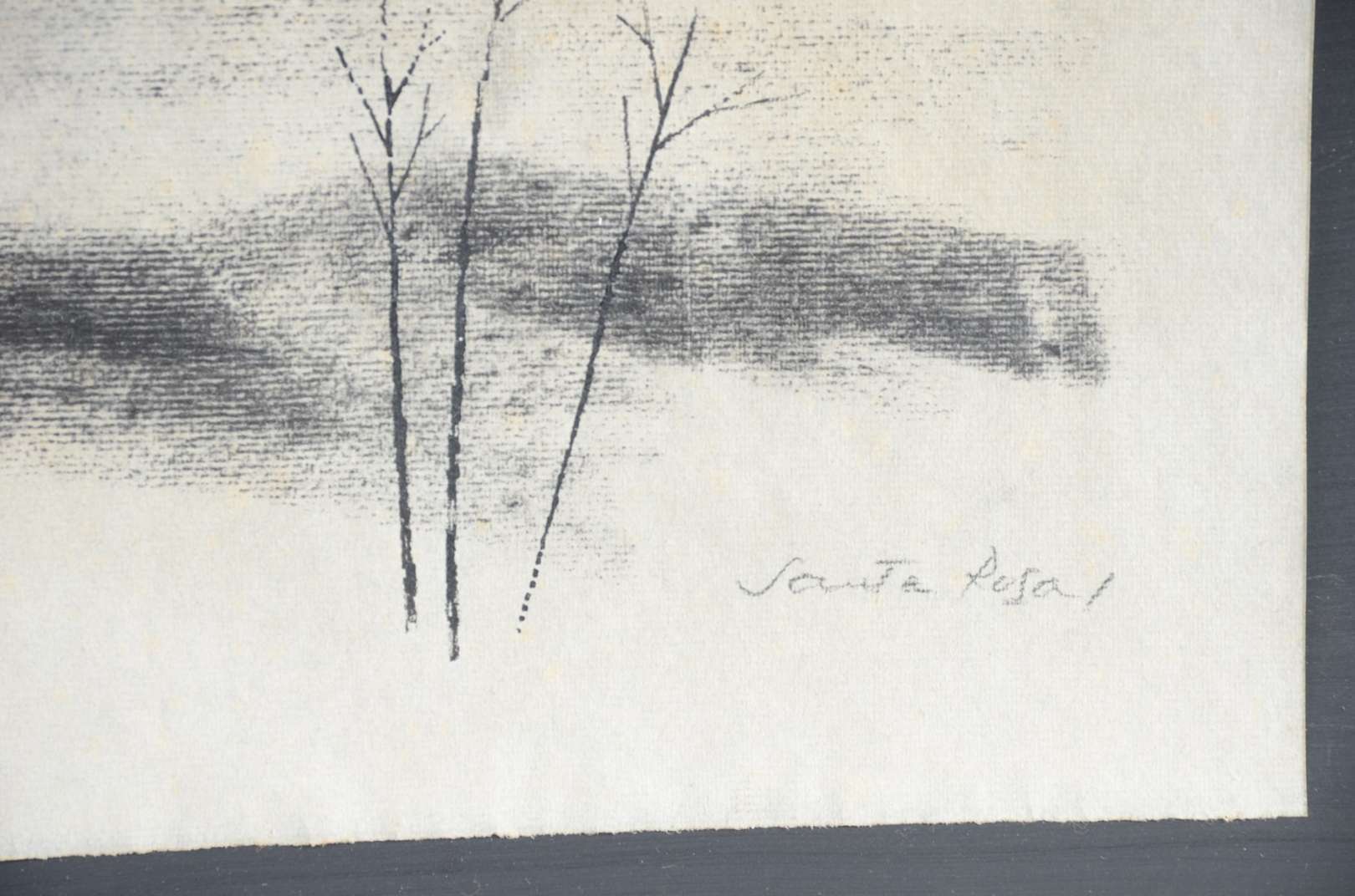 Gravura aquarelada, assinada. Pequenos pontos de fungos.