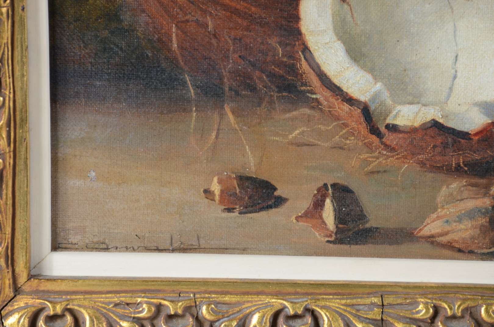 Gravura aquarelada, assinada. Pequenos pontos de fungos.