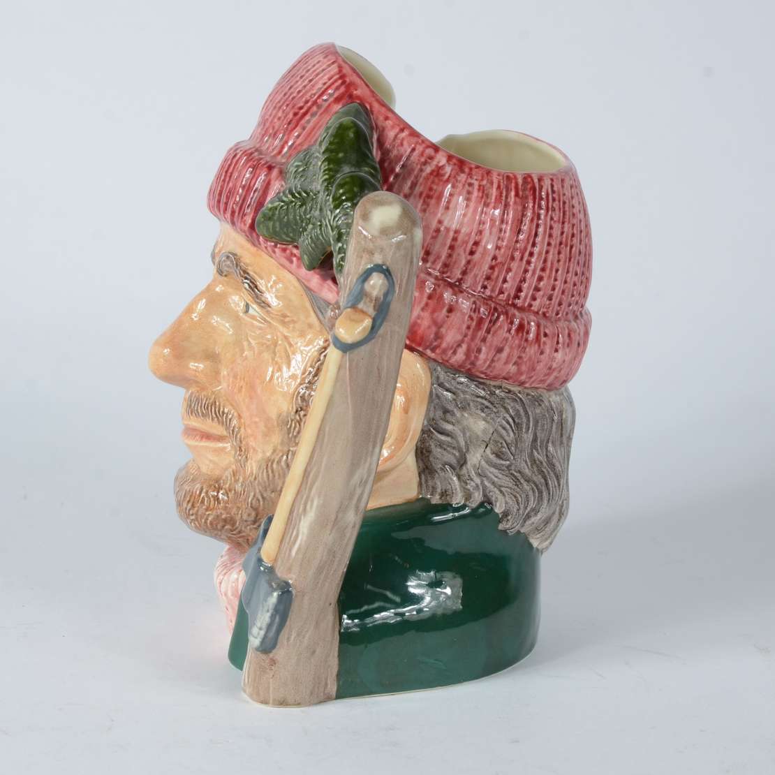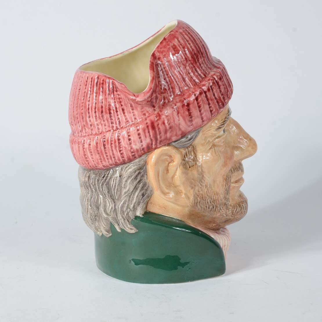 Tres canecas diversas de faiança inglesa policromada representando "Lobos do mar". Uma delas com a alça colada, outra...
