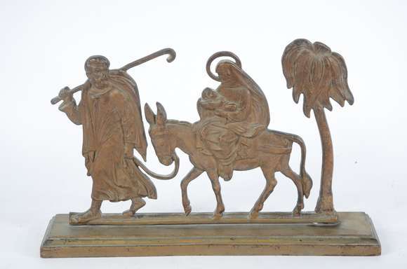 Escultura de metal representando "Fuga do Egito"