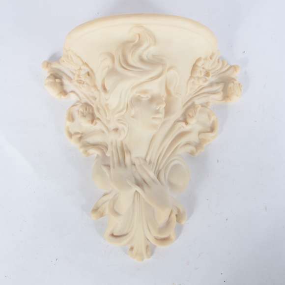 Peanha de resina com figura feminina, estilo Art Noveau.