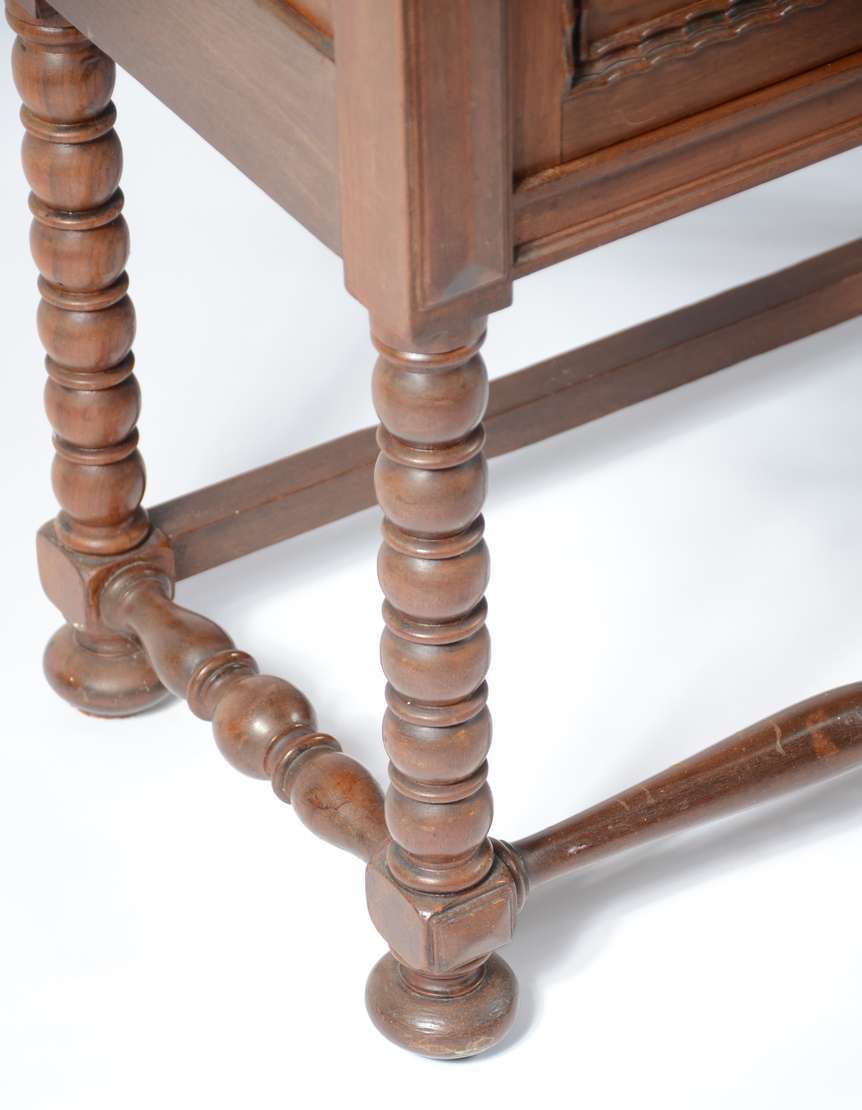 Arca de madeira nobre com 2 portas almofadadas e 1 gavetão na parte inferior