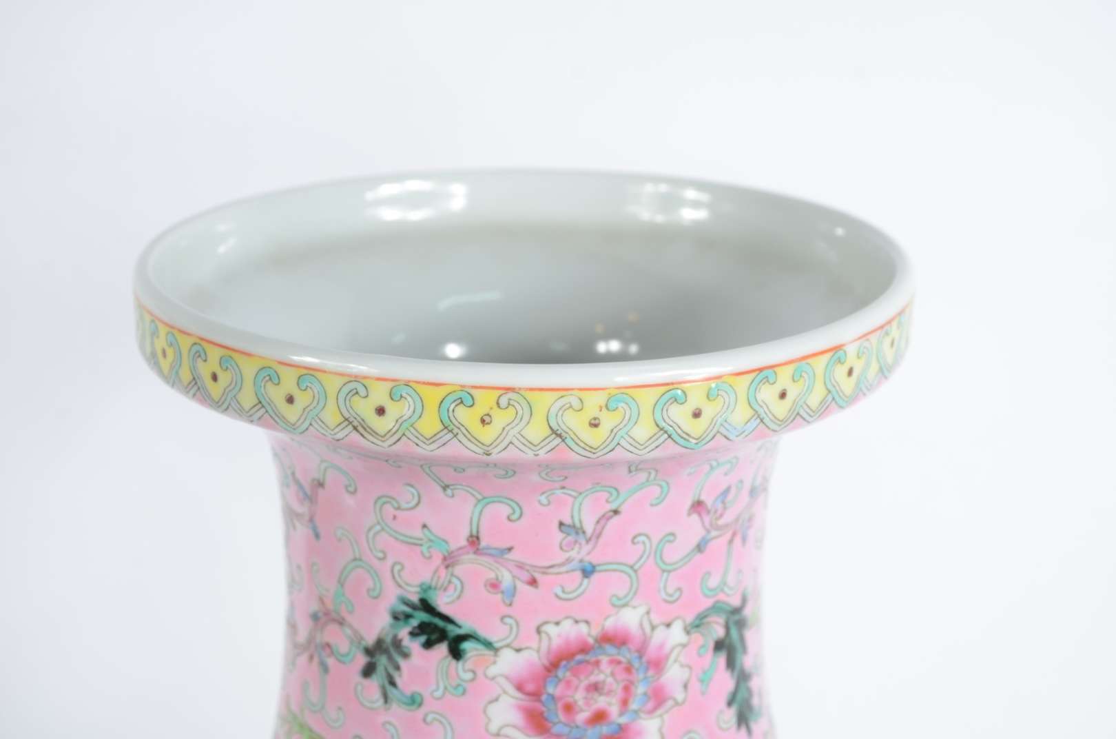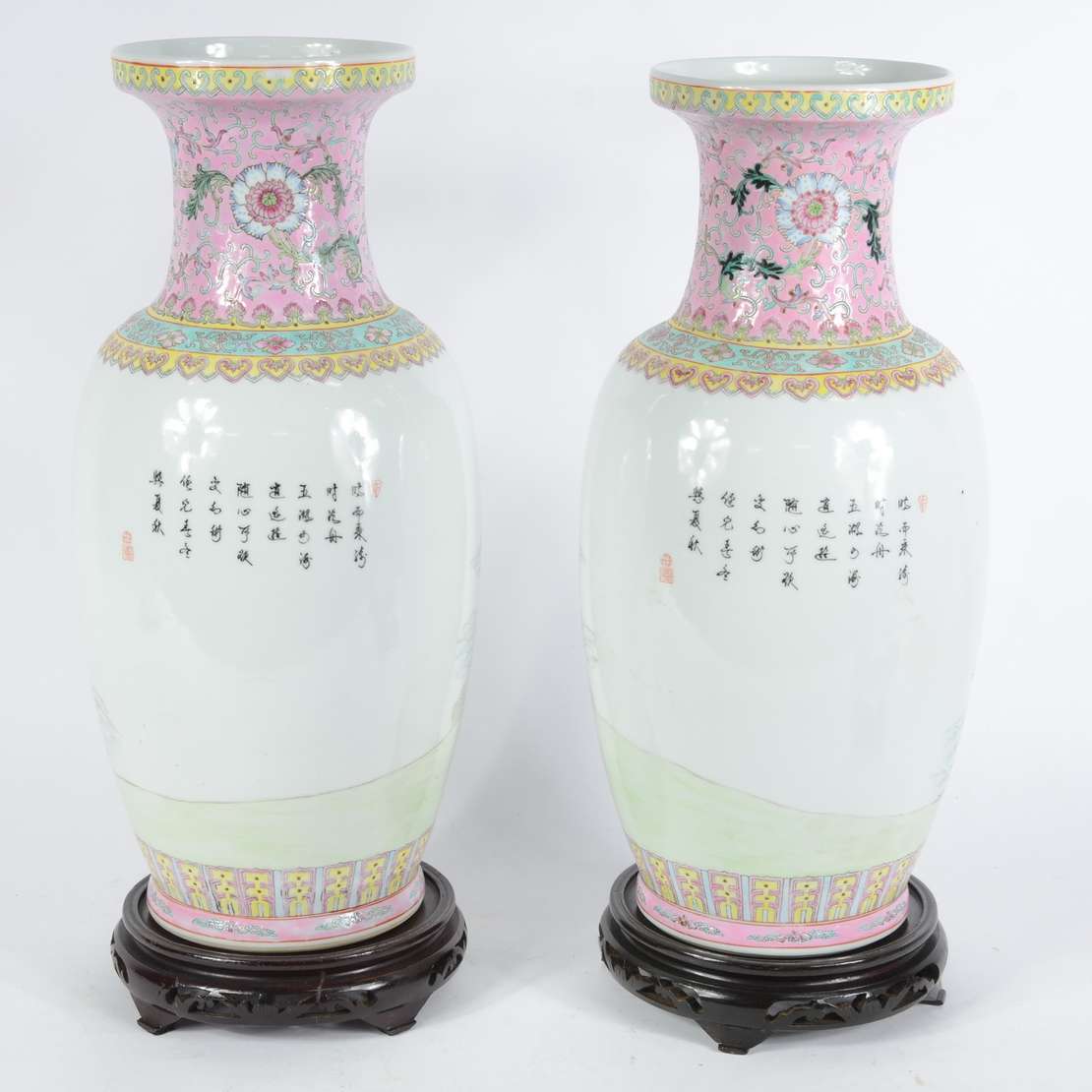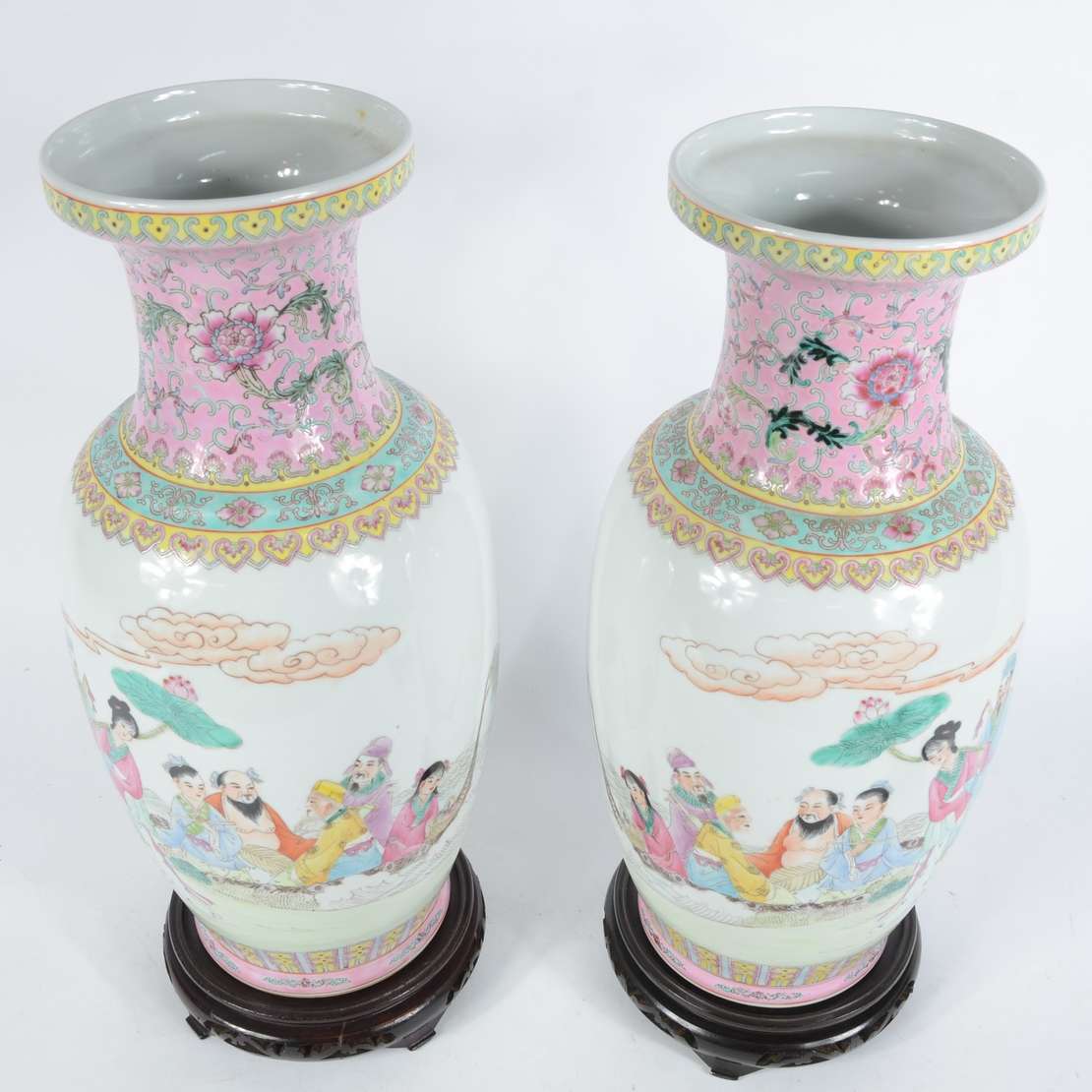 Dois vasos de porcelana oriental, decorados com flores em policromia, modelos diversos.