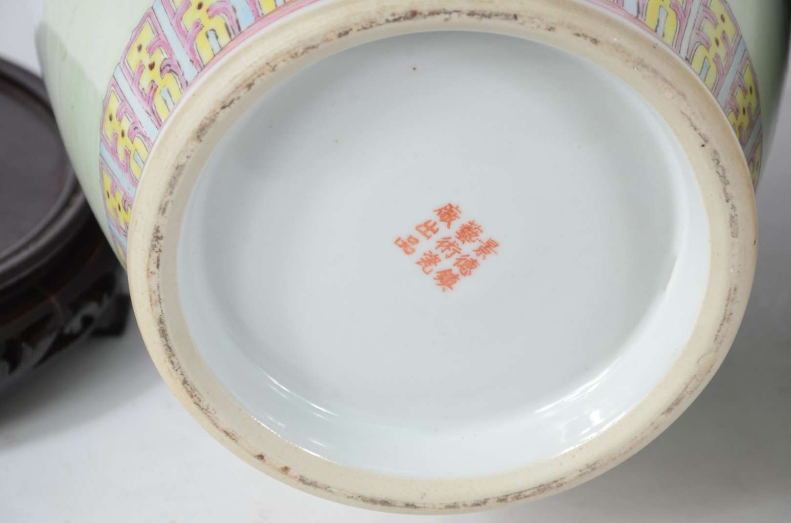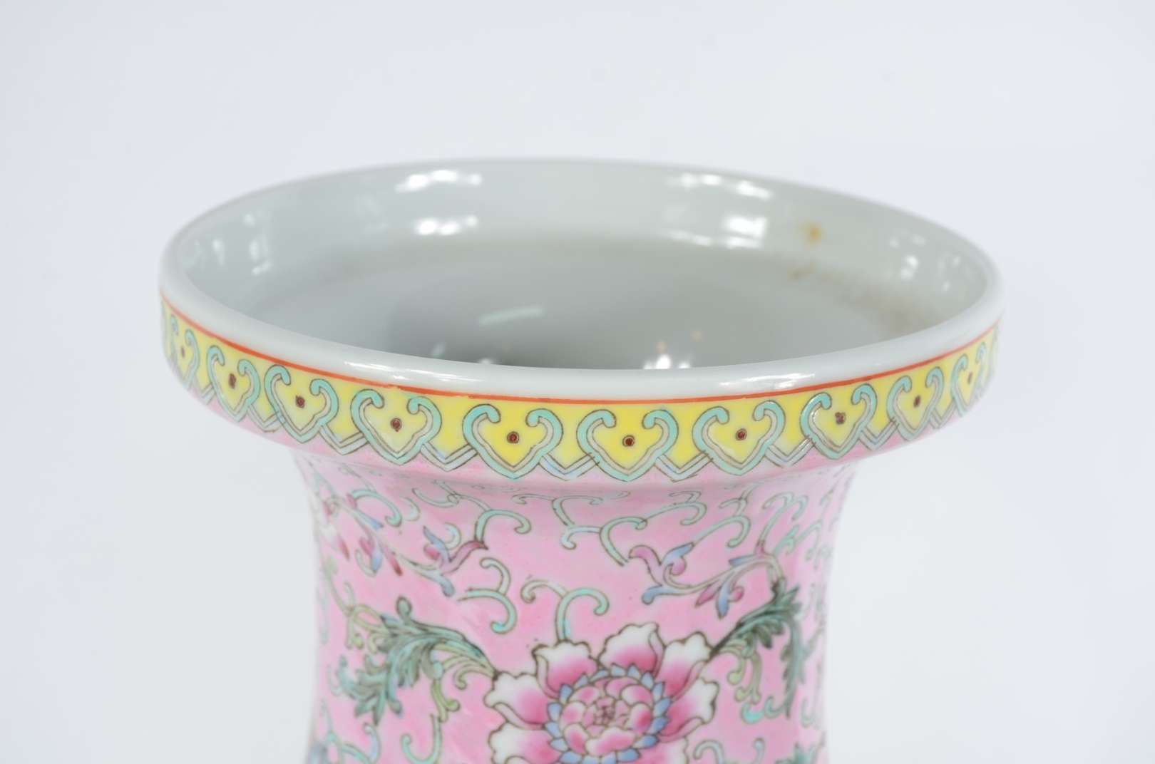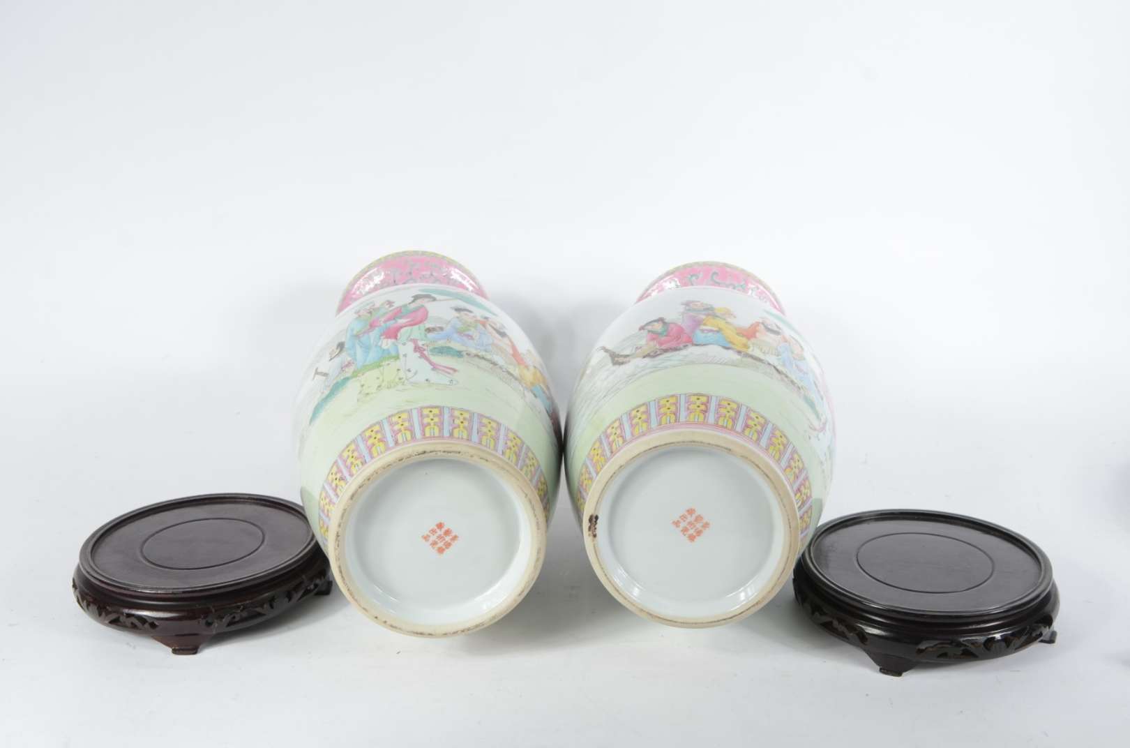 Quatro vasos diversos de porcelana oriental, sendo um vermelho decorado com pássaros e flores; um par com decoração f...